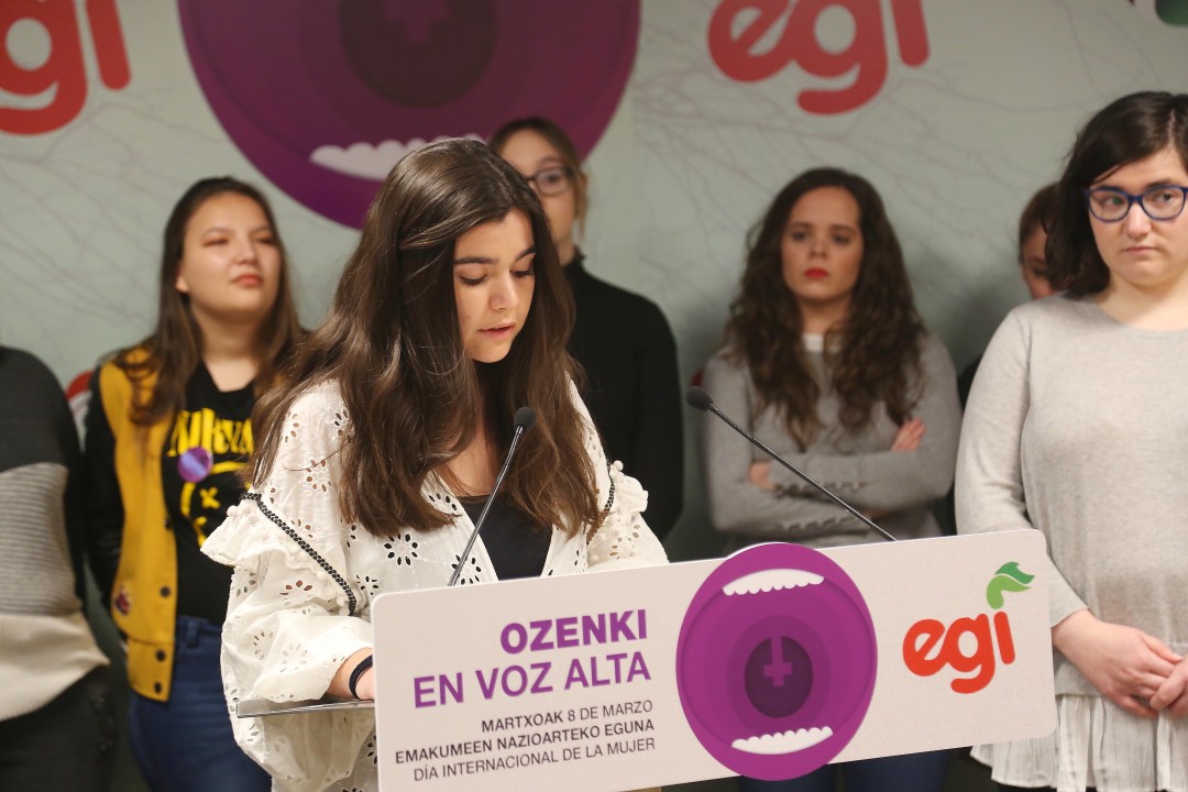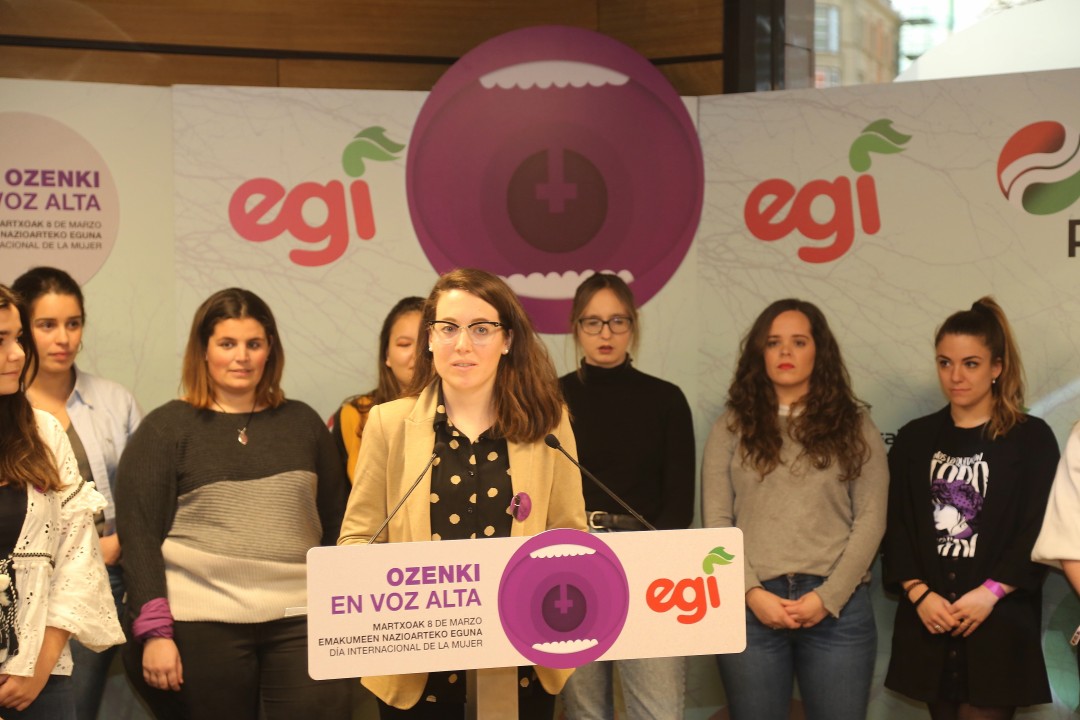 Euzko Gaztedik (EGI) bat egin du gaur kalean eman diren eta emango diren mobilizazio guztiekin eta horrela adierazi dute Sabin Etxean 20 bat emakume gaztek burutu duten agerraldian, bertan Martxoaren 8rako egin duten manifestua irakurri eta mobilizazio guztietan parte hartzeko deia egiten den eta beraiek sortu duten bideoa aurkeztu dute