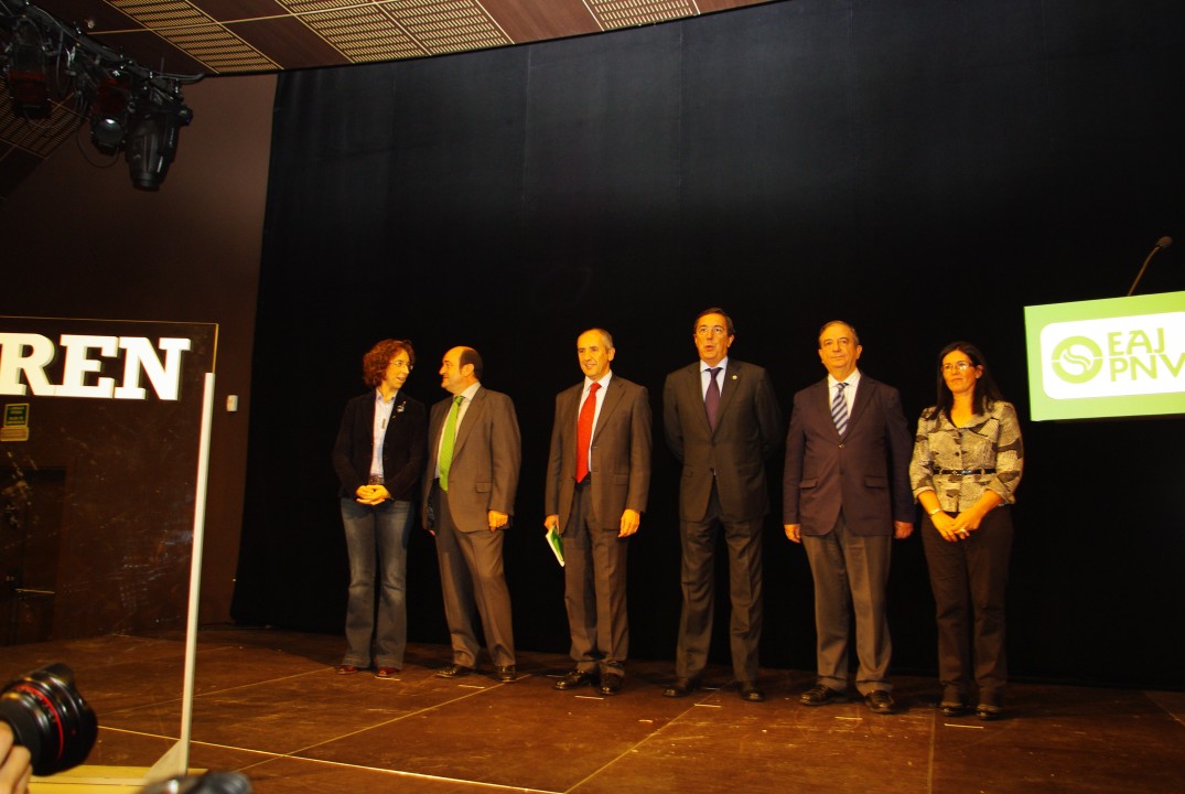 Josu Erkoreka con alcaldes y concejales en el Teatro Campos 28Octubre 28 |