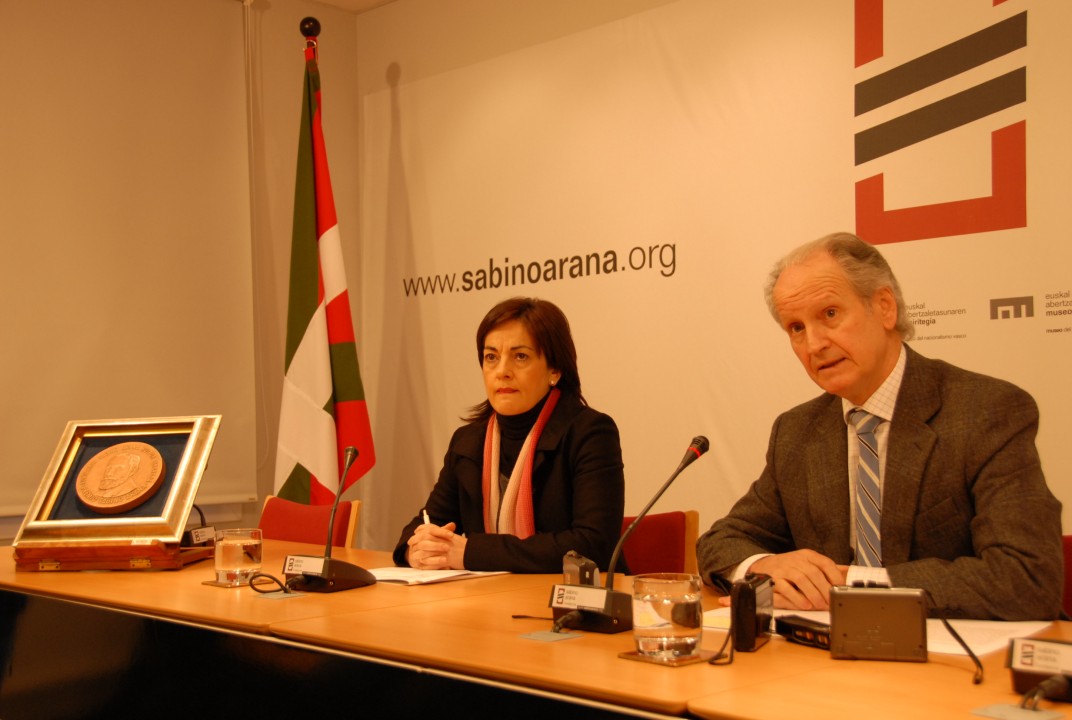 Zuluaga y Atutxa, la directora y el presidente de la Sabino Arana Fundazioa en la presentación de lo 01Enero