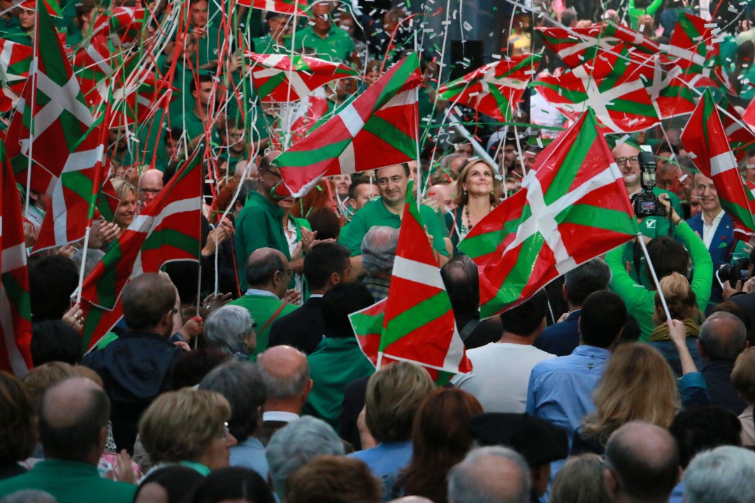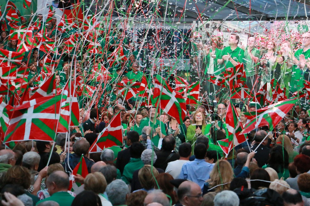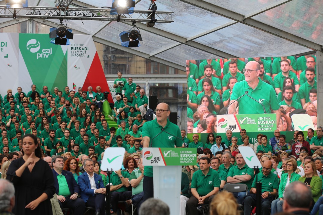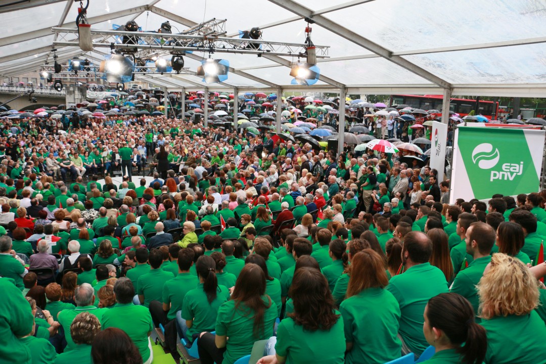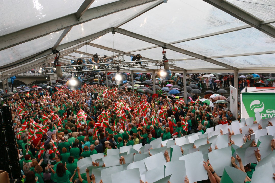 Bilbao. Mitin Plaza Arriaga. Andoni Ortuzar, Iñigo Urkullu, Aitor Esteban, Joseba Agirretxea, Mikel Legarda