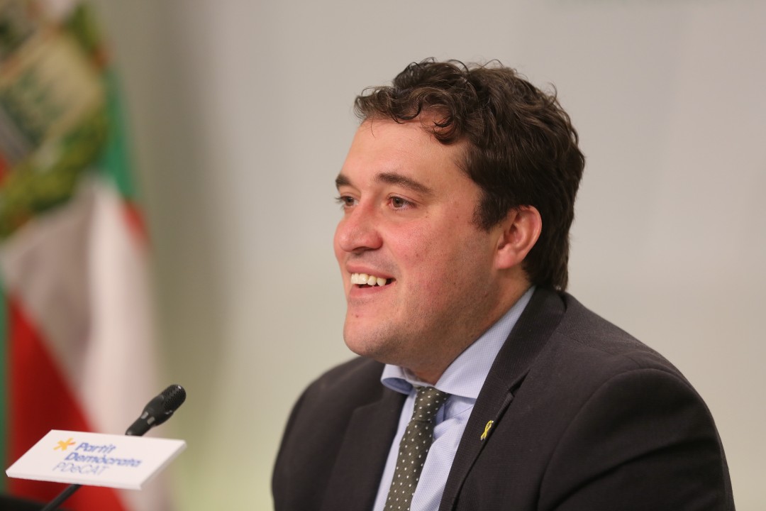 Andoni Ortuzar, presidente del EBB, y David Bonvehí, presidente del PDeCAT, firman un acuerdo de colaboración. 09Abril