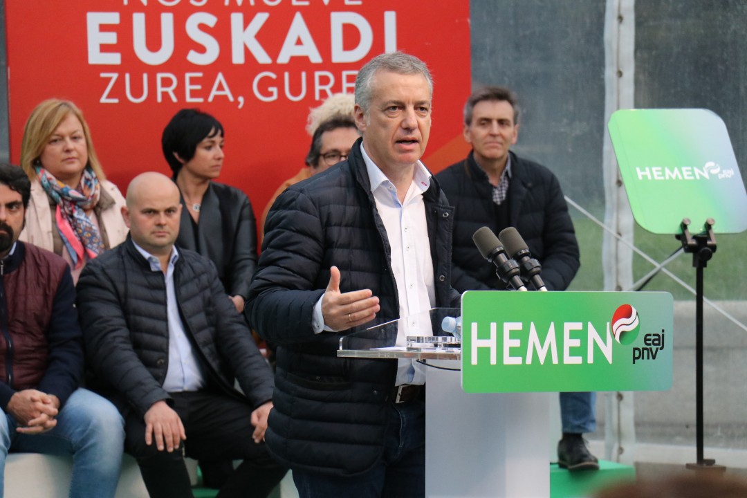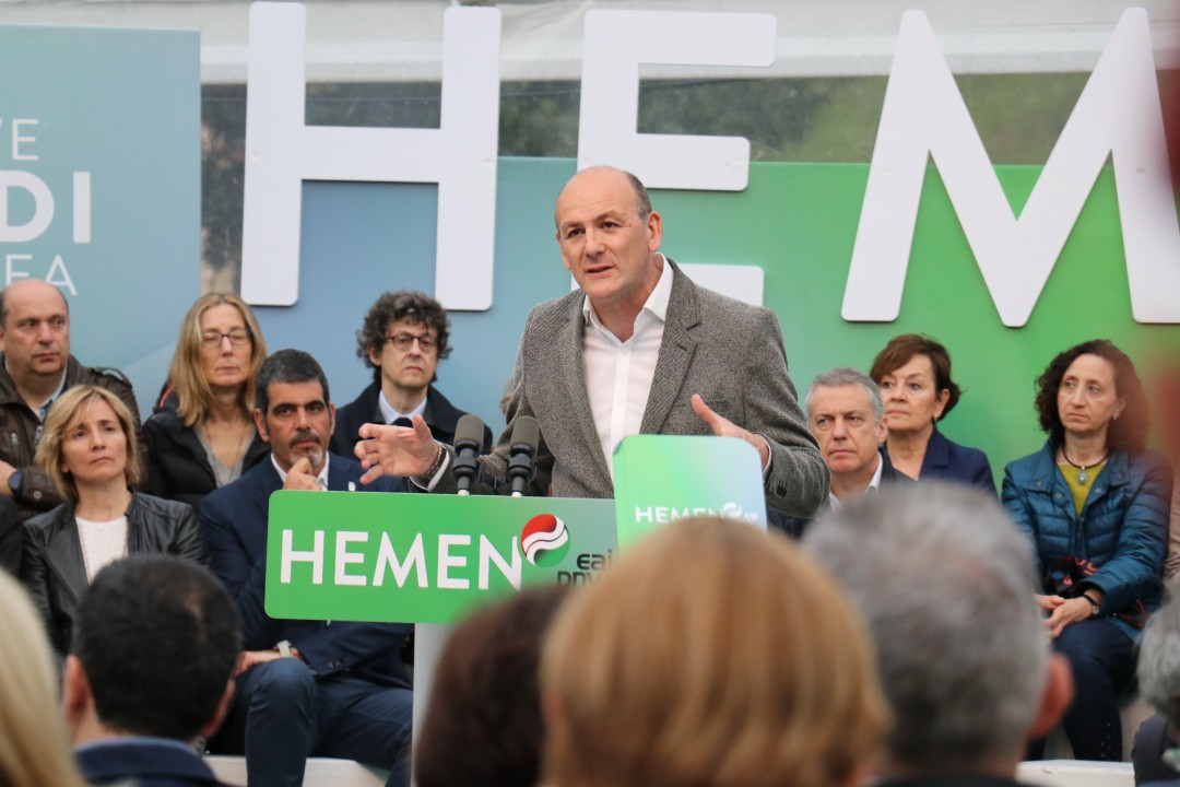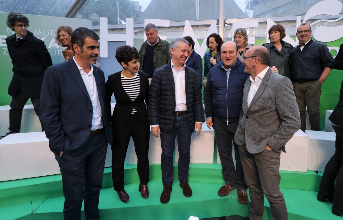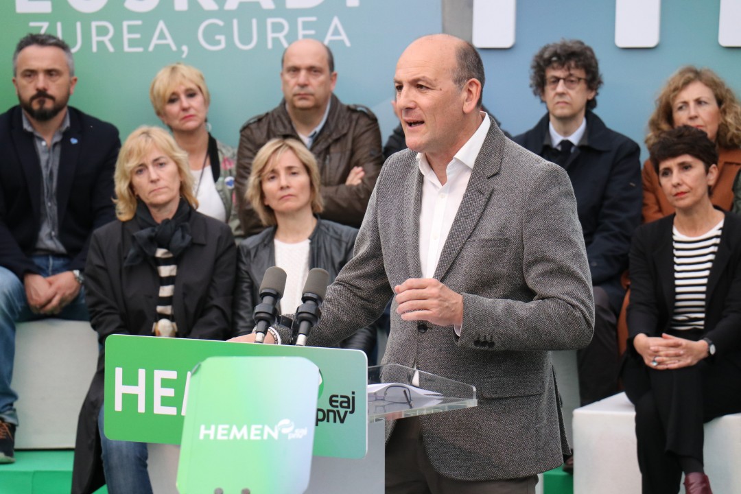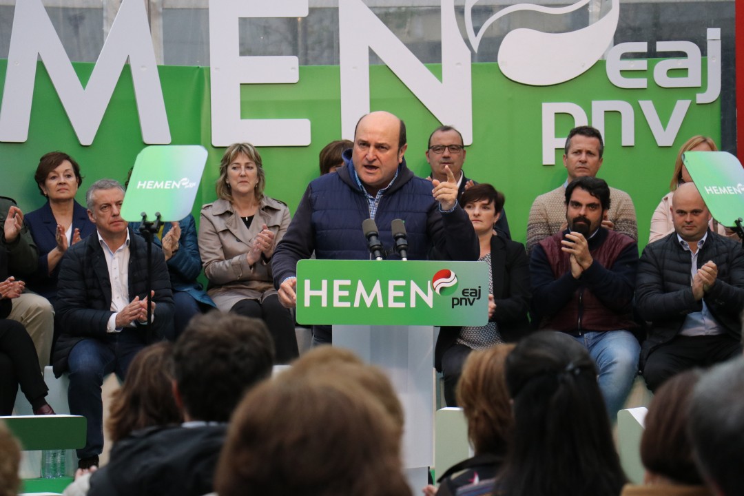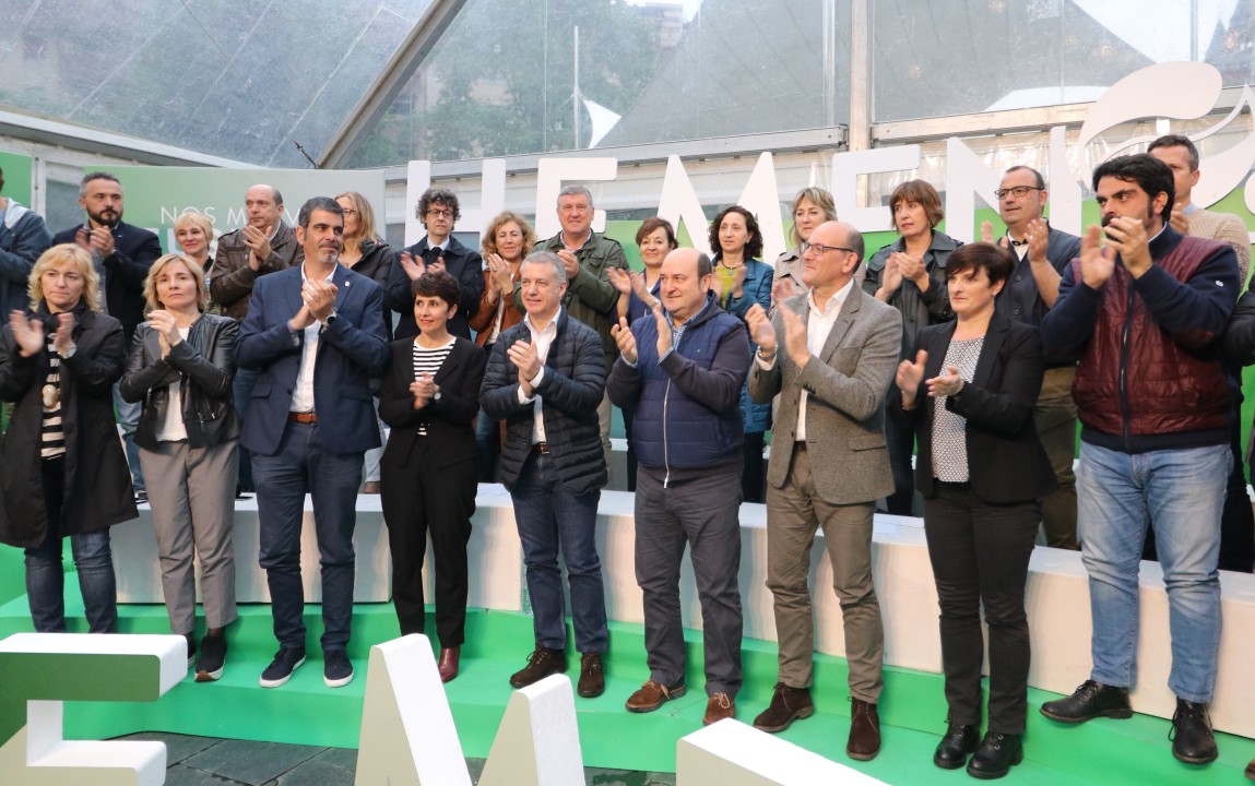 Mitin Donostia. Joseba Agirretxea, Maribel Vaquero, Eneko Goia, Iñigo Urkullu, Andoni Ortuzar