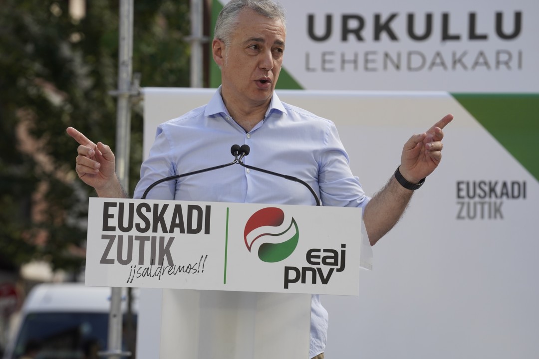 Mitin Laudio. Estibaliz Larrauri, Iñigo Urkullu, Andoni Ortuzar.