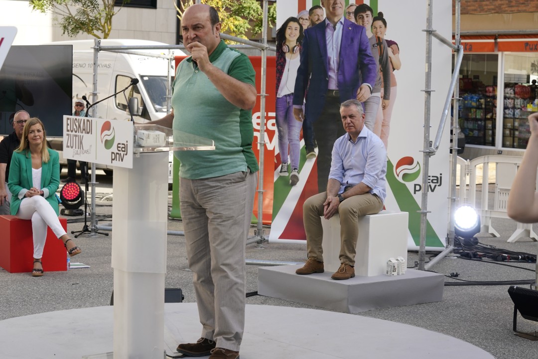 Mitin Laudio. Estibaliz Larrauri, Iñigo Urkullu, Andoni Ortuzar. 27Junio