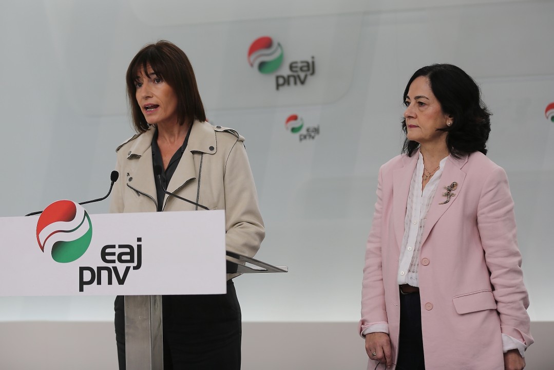 Irune Zuluaga y Esther Apraiz, dan lectura a una declaración de EAJ-PNV  tras las sucesivas sentencias judiciales contrarias al uso y fomento del euskera 21Octubre
