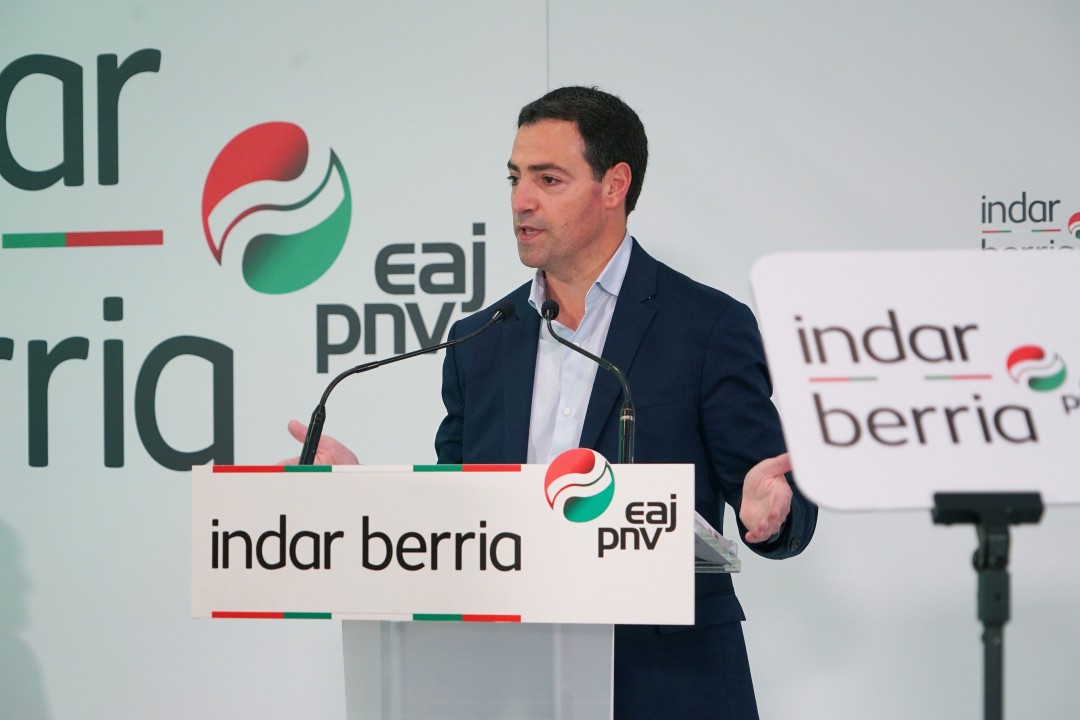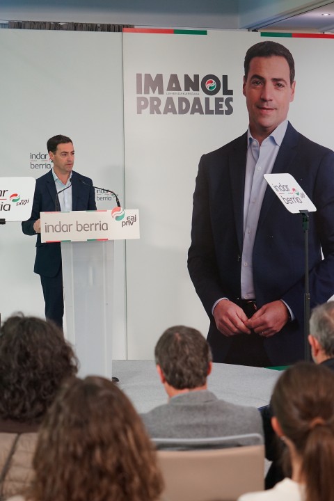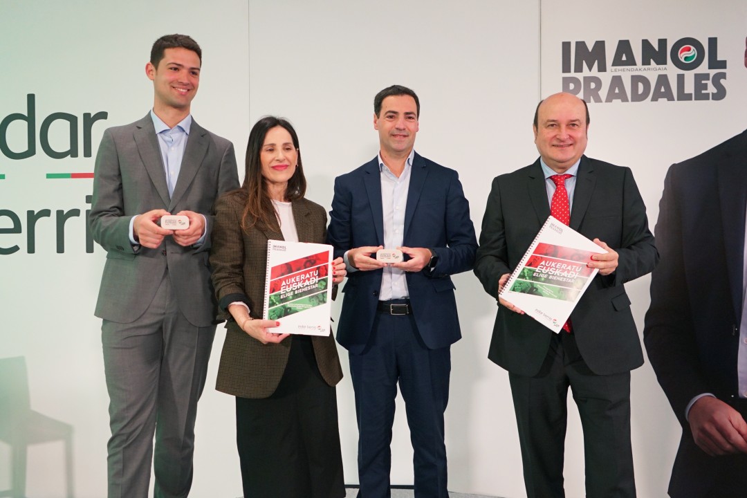Imanol Pradales y Andoni Ortuzar presentan el programa electoral para el Parlamento Vasco 2024 03Abril