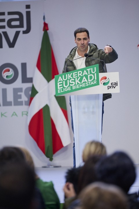 21-A Mitin Barakaldo. Imanol Pradales, Iñigo Urkullu, Amaia del Campo, Andoni Ortuzar 16Abril