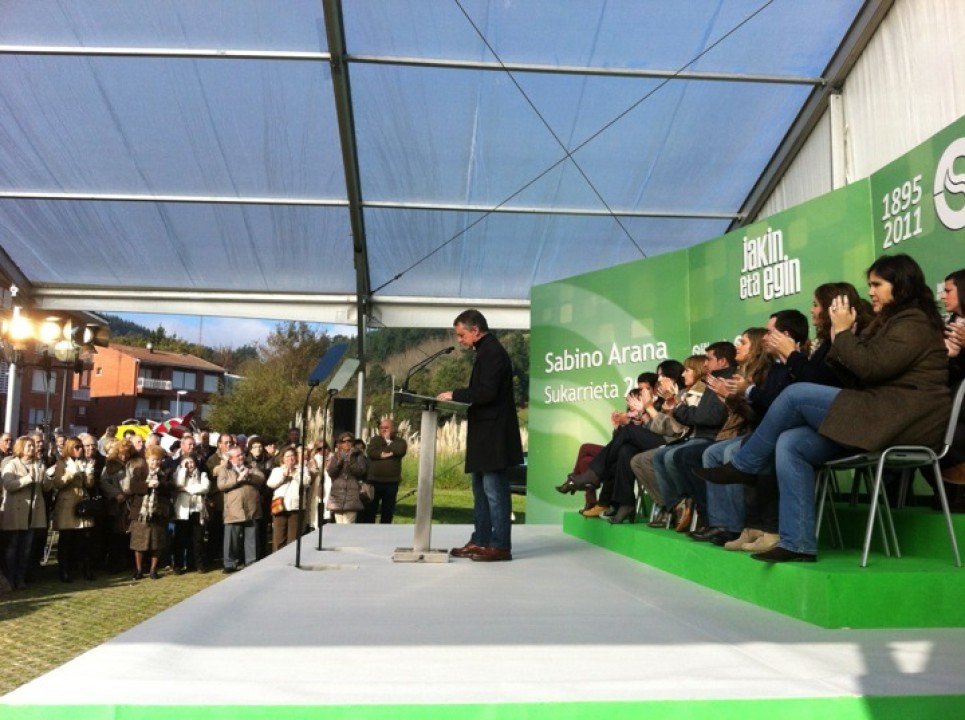 Hoy en el 116 aniversario del fallecimiento del fundador de EAJ-PNV, Sabino Arana, el presidente del EBB de EAJ-PNV, Iñigo Urkullu, ha señalado en Sukarrieta que “hoy vivimos un nuevo tiempo. Tiempo difícil en lo económico. Nuestro desafío inmediato es resistir ante la feroz crisis económica que sacude nuestro entorno. Resistir para no ser rescatados. Resistir con rigor presupuestario y económico. Resistir al lado de las empresas. Acompañándolas en los momentos de dificultad para que no cierren la persiana. Con sacrificio, con apuros, pero sin desmayo. Tenemos una economía sustentada en la industria”.