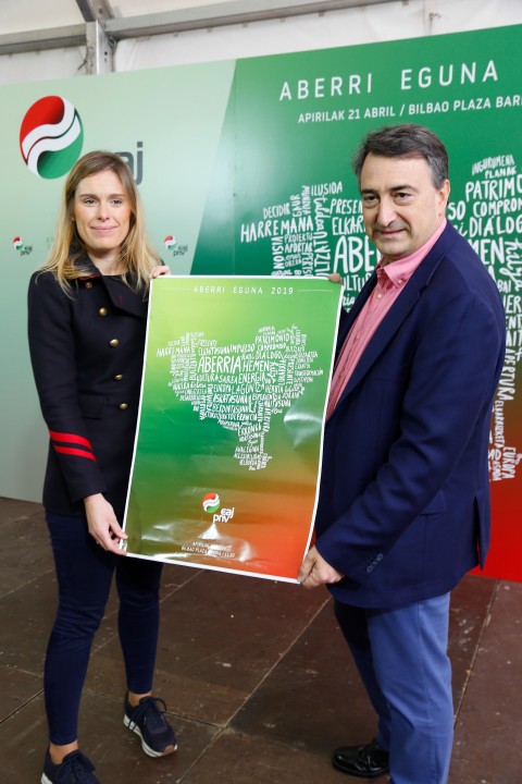 Mireia Zarate y Aitor Esteban han presentado el manifiesto y la fiesta que la formación jeltzale celebrará este domingo en Bilbao con motivo del Aberri Eguna