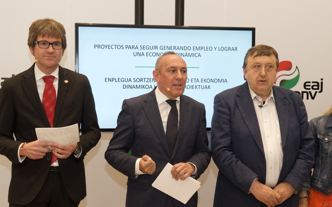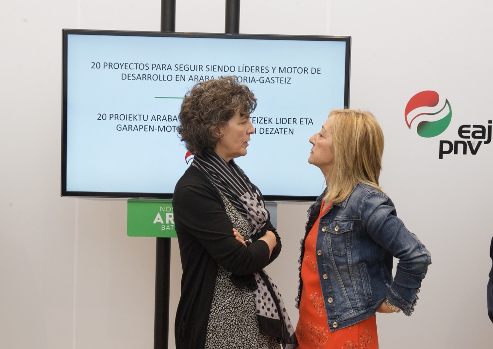 El Partido Nacionalista Vasco ha presentado los 20 proyectos prioritarios para que Araba y Vitoria-Gasteiz sigan siendo líderes y motor de desarrollo durante los próximos años. El diputado general y el alcalde, candidatos ambos a la reelección, han explicado cuáles son sus principales propuestas para que el territorio y la capital sigan ocupando los puestos que han alcanzado en la presente legislatura, siempre desde el trabajo conjunto, herramienta fundamental para lograr avances que repercutan en la calidad de vida.