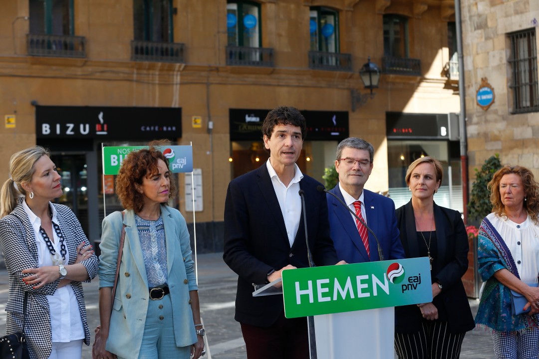 El candidato a diputado general, Unai Rementeria, ha presentado estos proyectos en un acto en el que Juan Mari Aburto, candidato a alcalde de Bilbao, ha desgranado iniciativas como la elaboración de un Plan Integral de Comercio Local o la puesta en marcha del proyecto ‘Bilbao, capital comercial‘