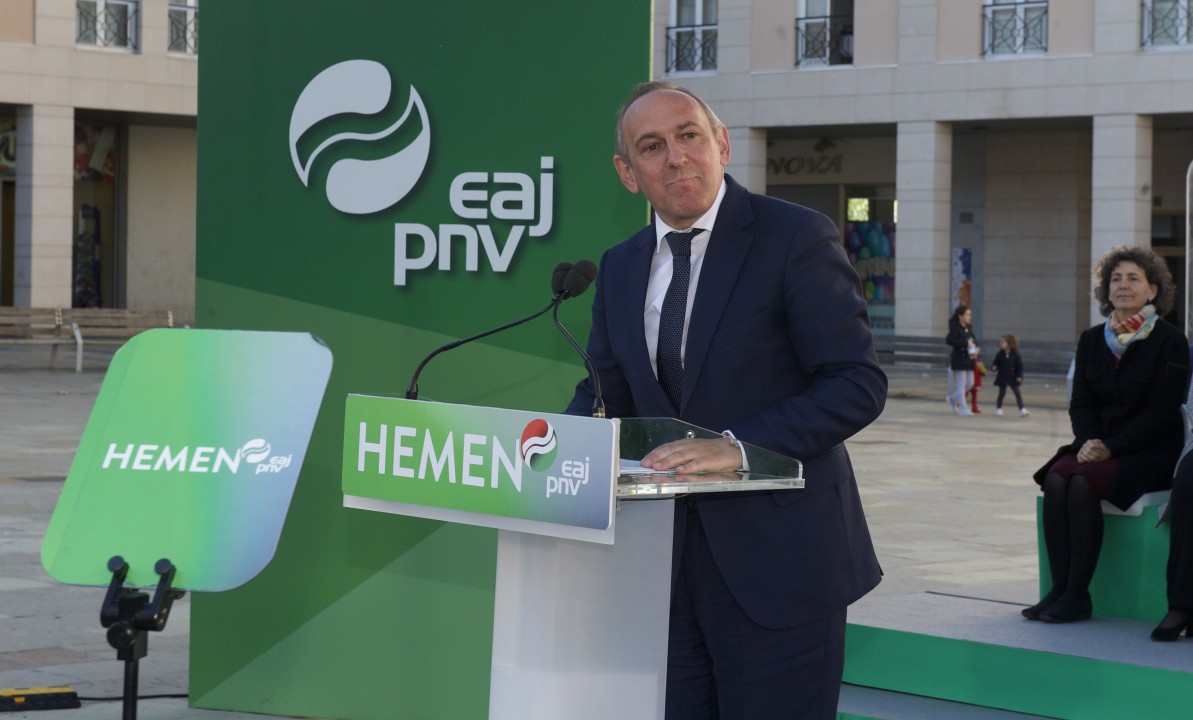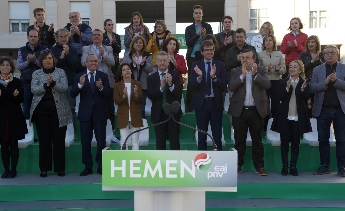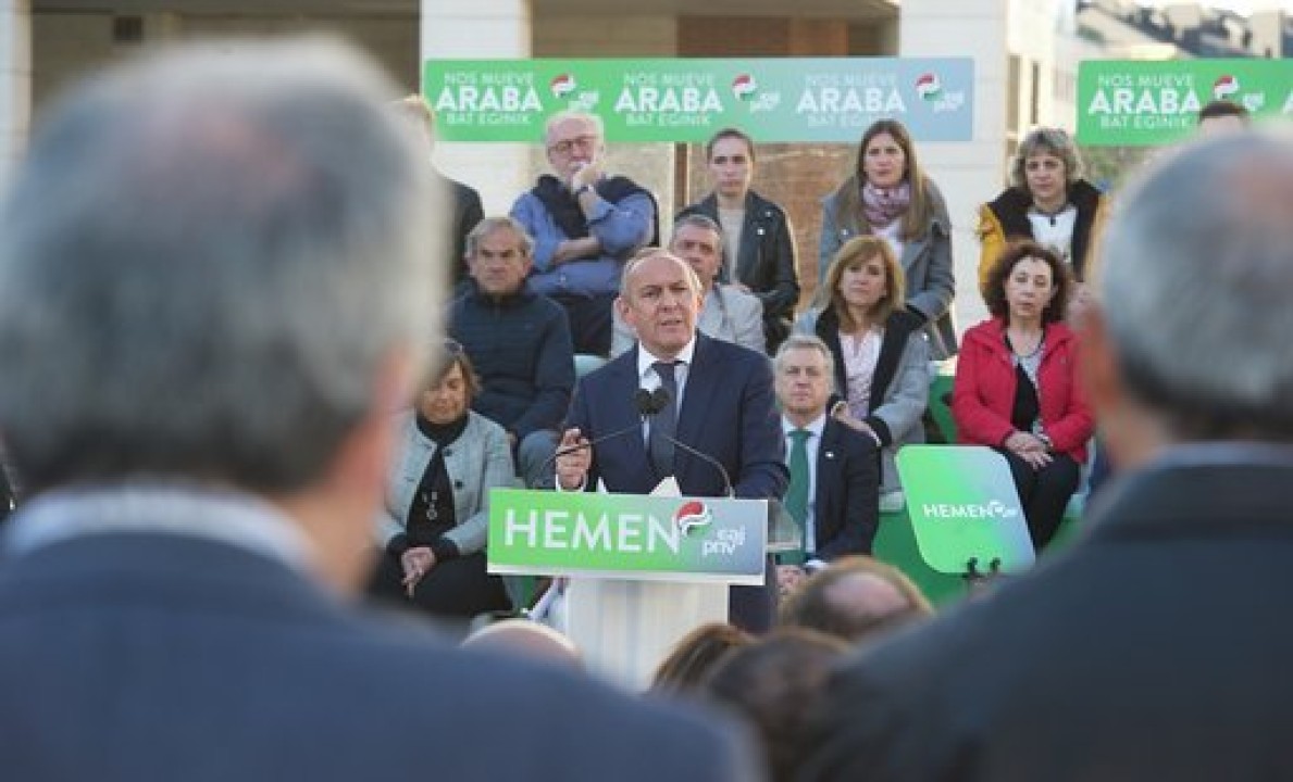 Por su parte, el diputado general de Álava y candidato de EAJ-PNV a la reelección, Ramiro González, ha dejado un mensaje muy claro a las personas asistentes al mitin. “El Partido Nacionalista Vasco es garantía de desarrollo económico para Álava. Garantiza la atracción e implantación de empresas, la creación de empleo y, por lo tanto, la generación de riqueza en el Territorio”, ha asegurado. González ha remarcado la idea, clave, de que en estas elecciones es necesario optar “y solo hay dos opciones: seguir avanzando o volver atrás. Hay que elegir entre quienes trabajamos juntos y hacemos vereda, o entre quienes solo saben imponer. Por ello, en Álava, para avanzar, Partido Nacionalista Vasco”.