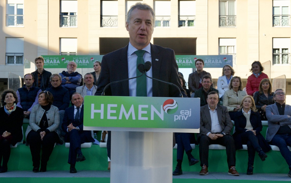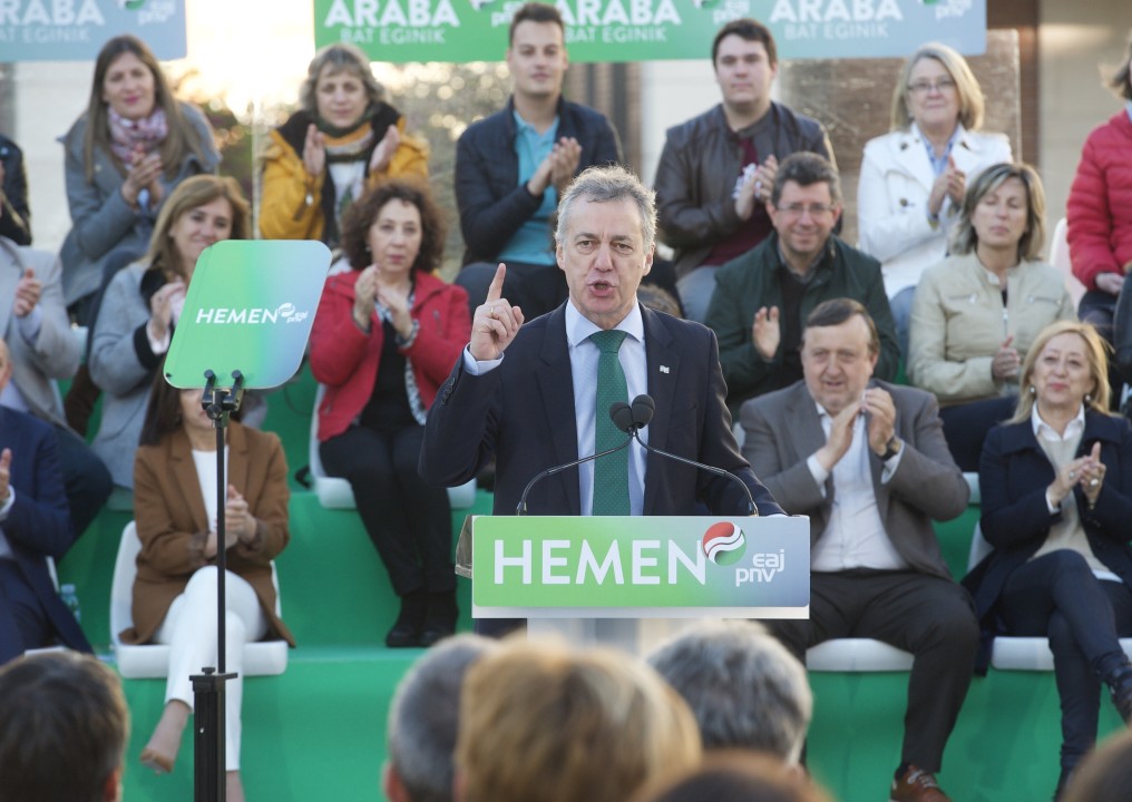 El Lehendakari ha participado en la Plaza Zumaia de Lakua en su primer mitin de campaña junto al propio Urtaran, Ramiro González e Izaskun Bilbao Barandica: “El Ecobulevar Zabalgana-Salburua va a cambiar la ciudad de abajo arriba”, ha asegurado