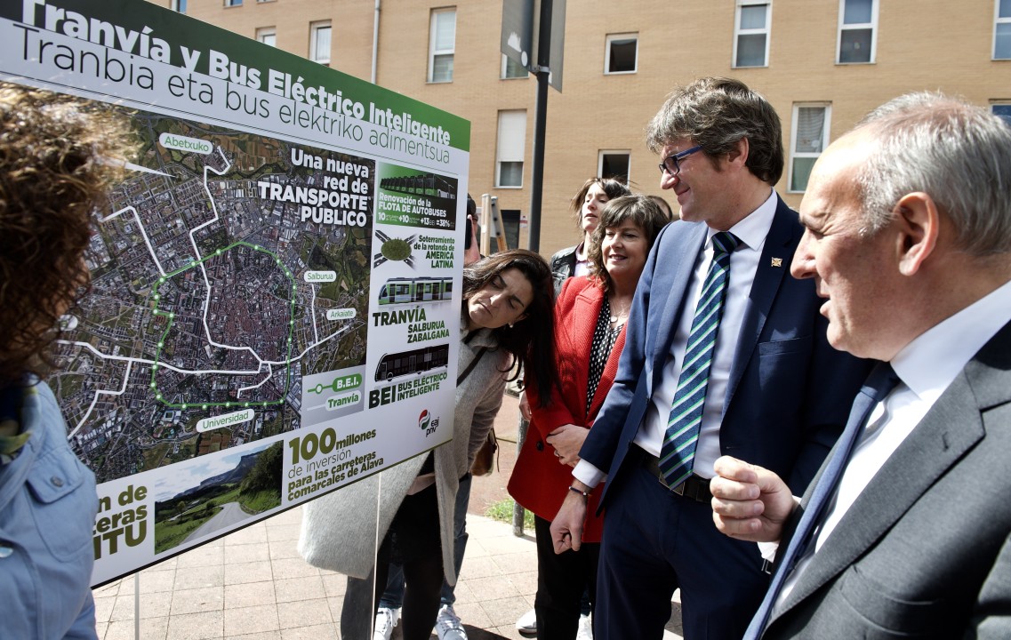 La base de este futuro esquema se ha forjado durante esta legislatura. “Hemos mostrado nuestro compromiso con la ciudadanía gasteiztarra. En el ámbito de la movilidad hemos cumplido lo prometido. Esta legislatura ha sido la legislatura de la movilidad. Hemos sacado adelante proyectos muy importantes como el tranvía al Sur, que encara la recta final de sus obras. El tranvía a Salburua saldrá a licitación antes del final de año. El estudio informativo de la ampliación del tren ligero hacia Zabalgana está a punto de ser publicado. Y, lo que es también importante, su financiación en el Ayuntamiento está garantizada. Mucho se ha hablado del tranvía a Salburua y Zabalgana en el Ayuntamiento de Vitoria-Gasteiz, pero solo nosotros hemos sacado estos dos proyectos adelante”, ha subrayado el alcalde. “También hemos adjudicado recientemente el proyecto del BEI, que se convertirá en el eje vertebrador del esquema de movilidad complementario al tranvía. 13 autobuses eléctricos de tecnología punta unirán a través de carril exclusivo y con frecuencias de menos de 8 minutos un total de 14 barrios de la ciudad, cubriendo la actual línea periférica. Va a suponer una revolución”, ha explicado Gorka Urtaran.