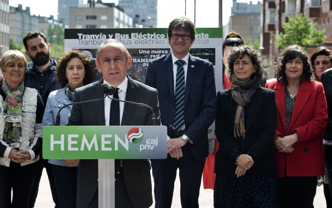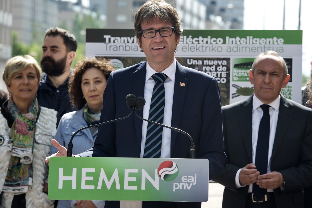 El candidato a la Alcaldía de EAJ-PNV ha destacado esta mañana que Gasteiz es una “Superciudad Europea por la movilidad urbana y la conectividad exterior. Estamos mejorando el transporte público y la movilidad con inversiones por valor de 216 millones de €”. Además, ha manifestado su compromiso con que “todas y cada una de las personas residentes en Vitoria-Gasteiz cuenten a menos de diez minutos a pie con un sistema de transporte que les permita alcanzar cualquier punto del municipio en menos de 35 minutos”. Gorka Urtaran también ha subrayado su apuesta por el tranvía. “Es el modo de transporte campeón. Es sostenible, accesible, eficaz y rápido. Son muchos los partidos que han hablado del tranvía en el Ayuntamiento. Pero nosotros somos los únicos que hemos cumplido la palabra dada llevándolo a los barrios de Salburua y Zabalgana. Estos dos proyectos son ahora una realidad en marcha y no vamos a permitir que otros lo paralicen porque algunos, como Bildu hablan de consultas sobre el tranvía porque lo que quieren hacer es pararlo”. El planteamiento del actual alcalde y candidato a la reelección es, además de la implantación del tren ligero, desarrollar un futuro esquema de transporte público eficiente basado en soluciones recogidas en el Plan de Movilidad Sostenible y Espacio público.