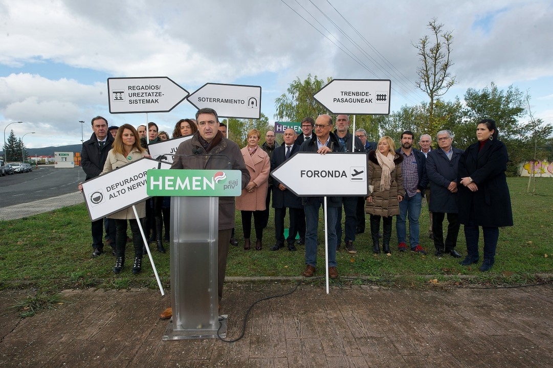 También ha puesto de manifiesto el compromiso de EAJ-PNV por el TAV y ha recordado que su labor ha supuesto en que la entrada en la capital alavesa del tren de alta velocidad sea soterrada (al igual que en las otras dos capitales vascas). En este sentido, ha apuntado que en el caso de Vitoria-Gasteiz, “ya van con retraso. No es posible que un Gobierno en funciones no cumpla con lo comprometido; el estudio informativo tendría que haber estado presentado en el Ministerio de Medio Ambiente para septiembre, y todavía no está”, pero “EAJ-PNV sigue reclamándolo y pronto estará definido”, ha sostenido. Siguiendo con el ámbito ferroviario, el candidato vizcaíno ha mencionado la eliminación de los pasos a nivel comprometidos. “El de Areeta está culminado y el de Amurrio está en obras”, ha explicado. Asimismo, en la línea Orduña-Miranda “hay muchos de esos paso que tienen las obras definidas. Corresponde ahora al Gobierno que vayan cumpliéndose”. Como también “tiene que cumplir con el compromiso de desarrollar los regadíos en Araba. ¿Por qué no se cumplen?”, ha denunciado el candidato a la reelección.
