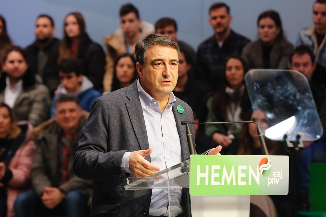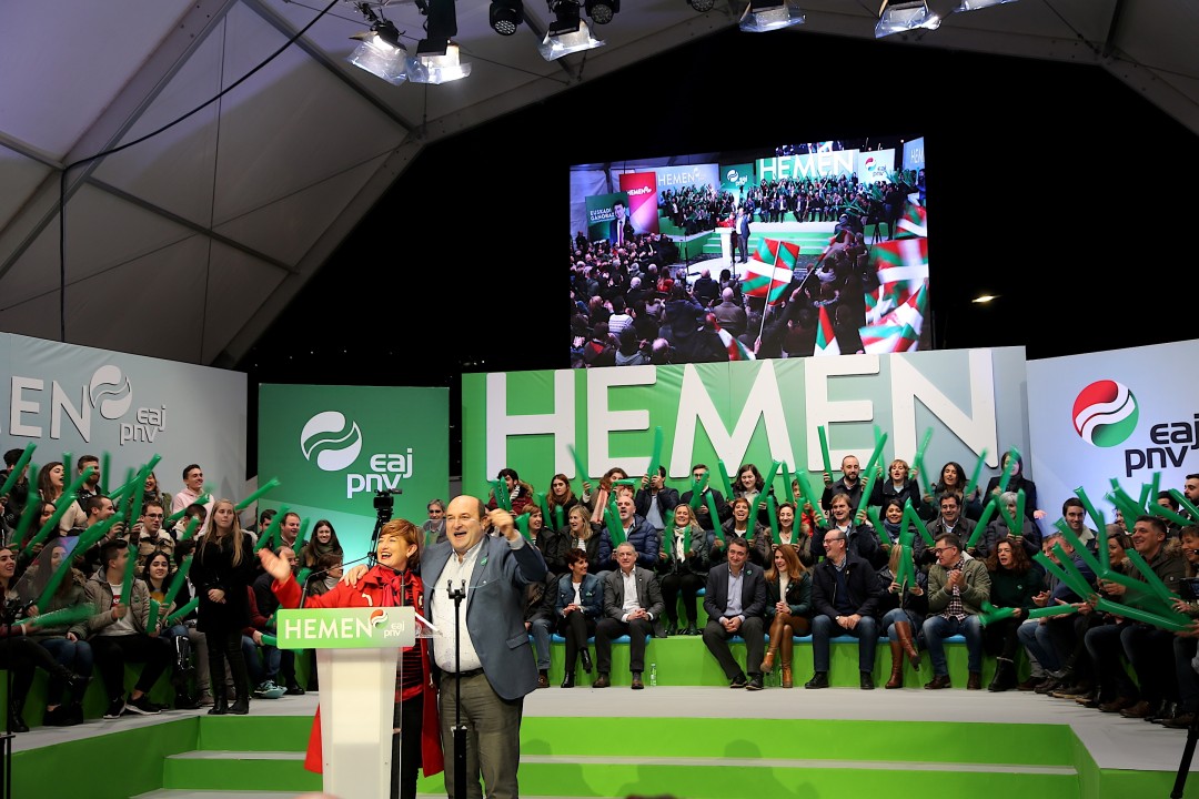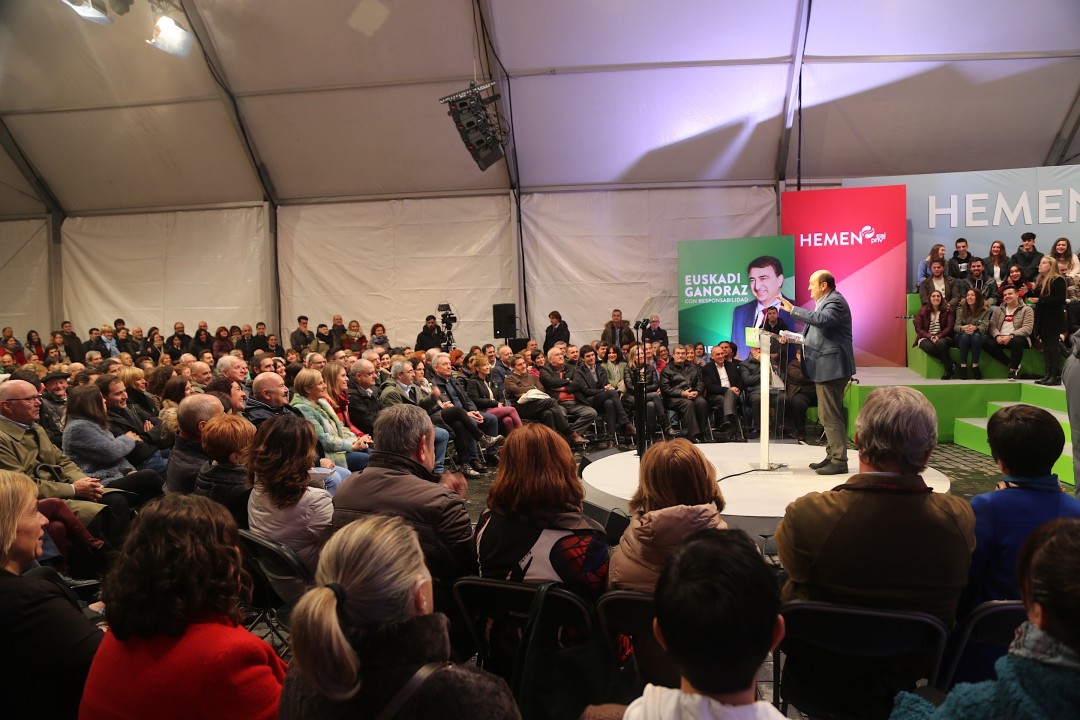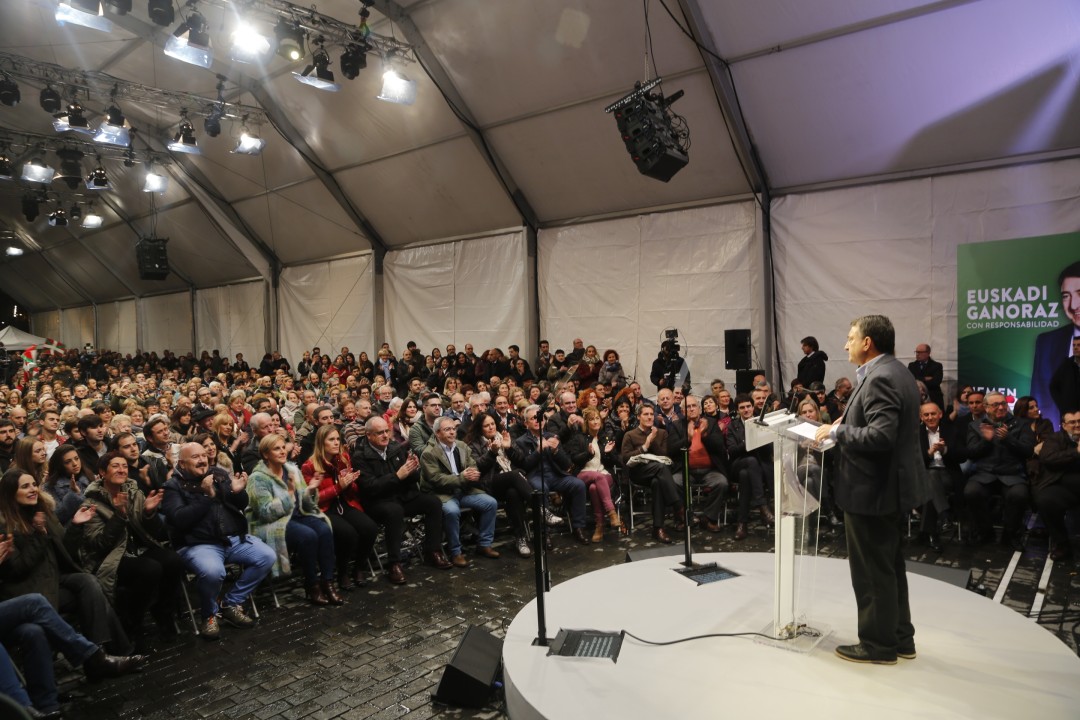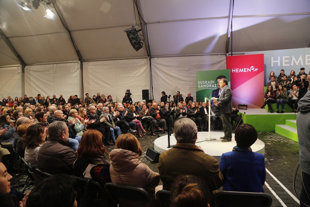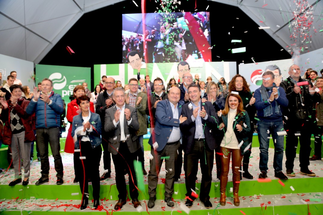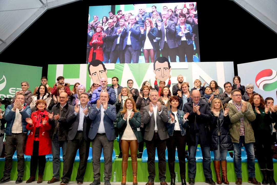 Ortuzar no ha ocultado su preocupación por el hecho de que “los políticos españoles no saben o no quieren poner en su sitio a la ultraderecha, ya sea por miedo, por necesidad o por complejo. Pero han dejado que estos neofranquistas campen a sus anchas y blanqueen su proyecto como si fuera un partido democrático más”. Esta laxitud ha provocado, según el líder abertzale, que un partido como Vox se haya permitido “la osadía de proponer nuestra ilegalización. Ellos, los fachas, proponiendo la ilegalización de un partido con 125 años de historia democrática: la mejor demostración de la locura en la que está la política española”. También ha censurado que “PP y Ciudadanos caminan ya por el borde de los mínimos democráticos” tras apoyar en la Asamblea de Madrid la ilegalización de los partidos soberanistas. Y les ha dicho a todos ellos: “Nos van a tener de frente, no nos van a achantar y no van a poder con nosotros. A este partido solo le sacará de circulación la ciudadanía vasca si algún día nos quita su apoyo. Mientras vascos y vascas nos apoyen, al PNV no hay quien lo pare”. Ortuzar ha señalado asimismo a la izquierda española, cuya “tremenda incapacidad para entenderse entre ella y con los demás” nos ha conducido a estas nuevas Elecciones, que son “un monumento a la incompetencia, al cainismo y a la falta de inteligencia de PSOE y Podemos para llegar a un acuerdo”. Por todo ello, Ortuzar ha pedido el voto al PNV “para demostrar que Euskadi es diferente, que Euskadi es nuestra Nación y que tiene quien la defienda en Madrid”.