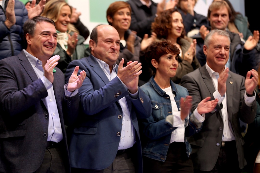 Ante más de 3.500 personas que se han congregado en El Arenal, Ortuzar, Urkullu, Esteban, Otaola y Vaquero han lanzado una respuesta unánime a las amenazas de ilegalización: “La ultraderecha española no va a poder con el PNV”