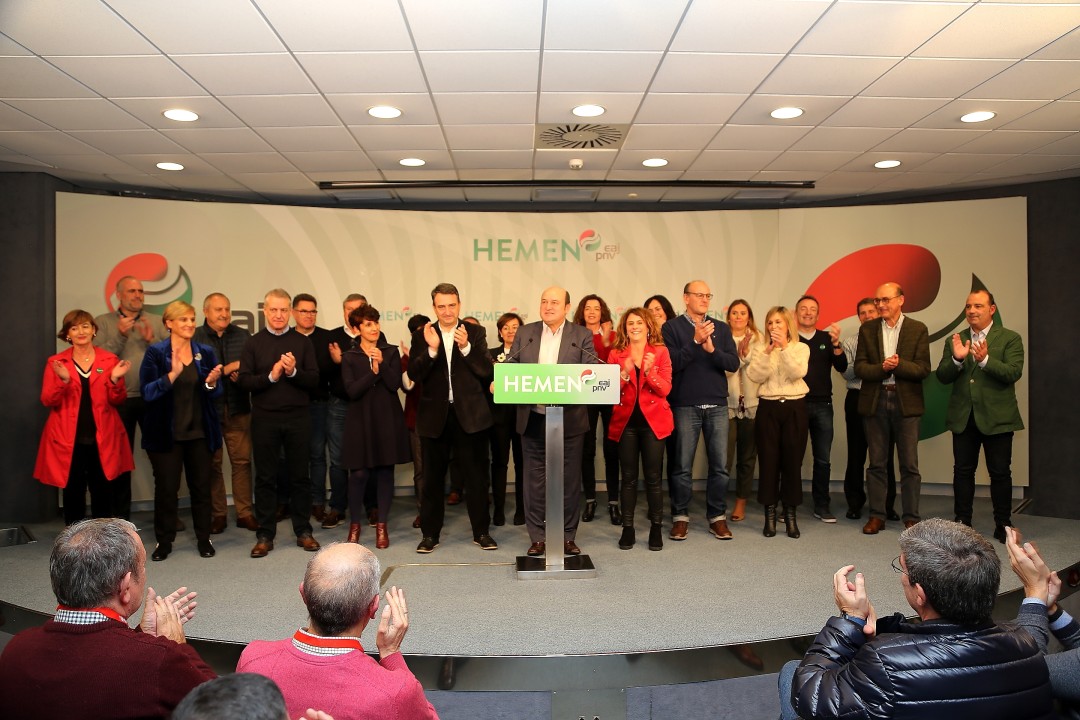 Por último, el presidente del EBB ha agradecido a la militancia y simpatizantes el trabajo y la confianza recibida porque “los resultados son un nuevo paso adelante” y ha tenido también palabras de agradecimiento para las y los candidatos, a todos sus equipos de trabajo y al conjunto de la sociedad vasca: “Bihotz bihotzez eskerrik asko! Euskadik aurrera darraio!”.