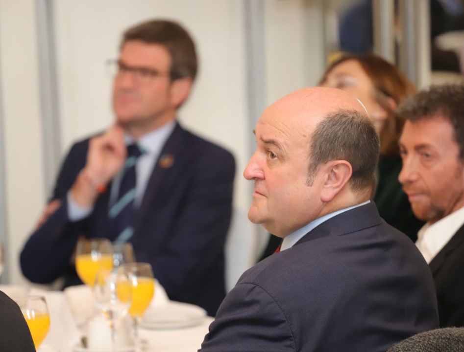 Ortuzar ha reiterado la apuesta jeltzale por un modo de hacer política, el que caracteriza a EAJ-PNV, muy distinto al hoy imperante en el Estado español. “En tiempos de política líquida, tuit ingenioso y zasca inmisericorde, nosotras y nosotros abogamos por la política tranquila, que no necesita tanto foco ni declaración sino acuerdos que luego podamos comunicar a la ciudadanía”, ha asegurado. El líder jeltzale ha aprovechado la concesión del premio para lanzar asimismo un mensaje de concordia y respeto en un momento de alta tensión política y territorial en el Estado español. “Las naciones que vivimos en el Estado español debemos convivir desde el respeto, la tolerancia y la aceptación. Somos partidarios del humanismo demócrata y del sistema democrático, el único que acepta en su seno a su discrepancia e incluso a quienes quieren cargarse el sistema”, ha asegurado. Y no ha dejado pasar por alto el alegato que minutos antes había hecho Gorka Landaburu contra el proceso de blanqueamiento de la ultraderecha. “No nos da miedo la petición de Vox de nuestra ilegalización”, ha dicho Ortuzar, “pero sí nos preocupa la calidad democrática. Y los partidos democráticos tenemos que hacer un esfuerzo para no cometer errores que pongan la alfombra roja a la ultraderecha y al populismo”. Para finalizar, el dirigente nacionalista ha invitado a los presentes a mirar más allá de la polémica política de cada día para poder afrontar “con decisión y desde valores humanos y democráticos los enormes retos que tenemos, como son el cambio climático, la oportunidad de la inmigración, el problema de la natalidad o la lucha por la igualdad entre hombres y mujeres. Cuenten con el PNV siempre que sea para avanzar mediante el diálogo y el acuerdo”, ha concluido.