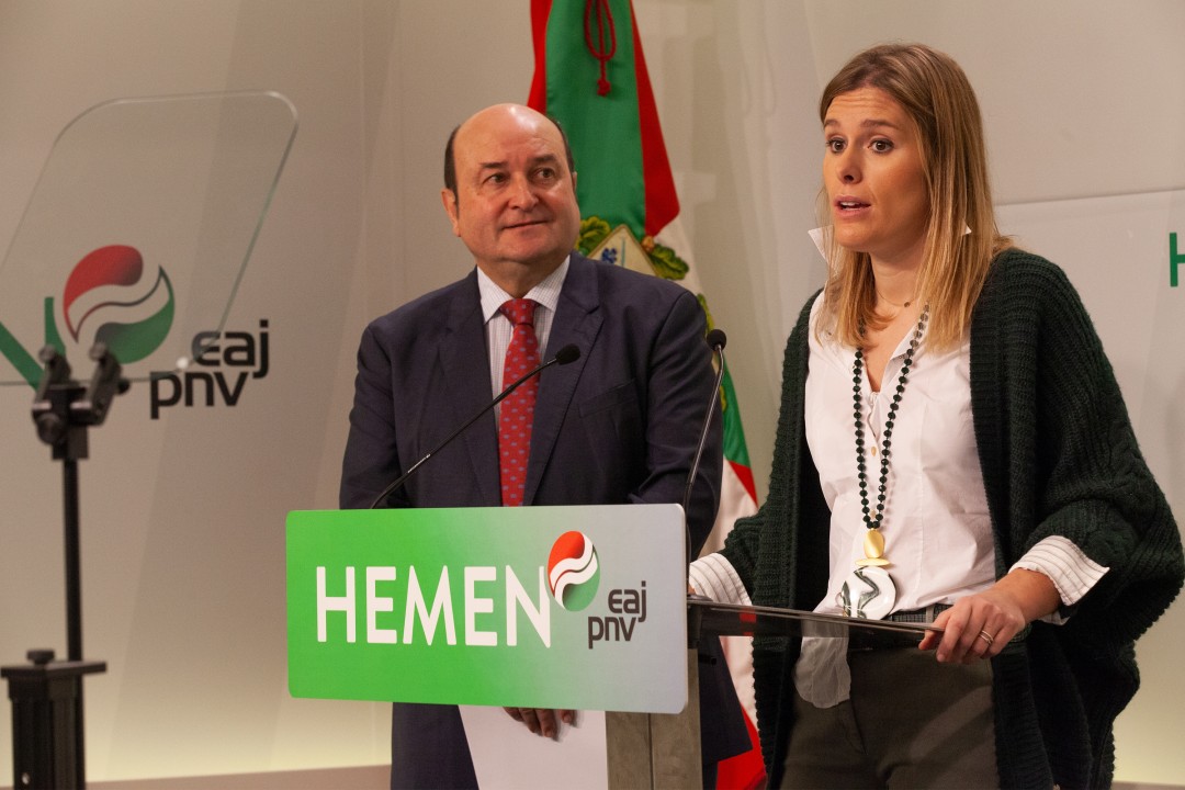 Una vez despejada la amenaza de una nueva repetición electoral en el Estado español, el Euzkadi Buru Batzar ha dado hoy a conocer el calendario político que ha diseñado para afrontar con certidumbre, garantías e impulso los importantes retos que le aguardan en 2020, tanto a nivel interno como en el ámbito institucional. El presidente del EBB, Andoni Ortuzar, y la secretaria de la Ejecutiva jeltzale, Mireia Zarate, han anunciado en rueda de prensa en Sabin Etxea que el EBB ha procedido hoy mismo, con la comunicación preceptiva con seis meses de antelación a las Organizaciones Municipales y Extraterritoriales y a las y los integrantes de la Asamblea Nacional, a la apertura del proceso que conducirá a la VIII Asamblea General de EAJ-PNV, que se celebrará en Bilbao los próximos 11 y 12 de julio. Ese fin de semana culminará, con la elección de Presidente o Presidenta y de 8 burukides, el proceso electoral interno para la renovación por cuatro años del EBB que también se ha iniciado en el día de hoy. Pero no ha sido este el único anuncio. Ortuzar y Zarate también han dado a conocer que el próximo miércoles 15 de enero, coincidiendo con la reunión de la Asamblea Nacional de EAJ-PNV, el EBB abrirá el proceso electoral interno para la elección de los candidatos y candidatas de EAJ-PNV a Lehendakari, a Presidente o Presidenta del Parlamento Vasco y a parlamentarios y parlamentarias por Araba, Bizkaia y Gipuzkoa en las elecciones al Parlamento Vasco que se celebrarán en el transcurso de 2020, en una fecha que fijará el Lehendakari, Iñigo Urkullu, en virtud de las atribuciones de su cargo. La identidad de las y los candidatos jeltzales se conocerá el sábado 7 de marzo.