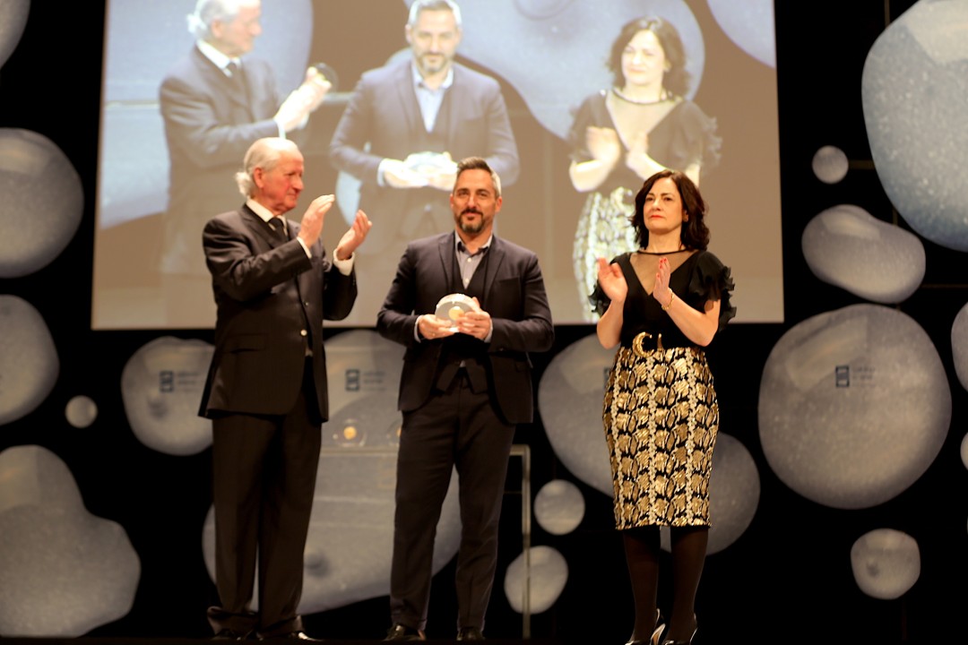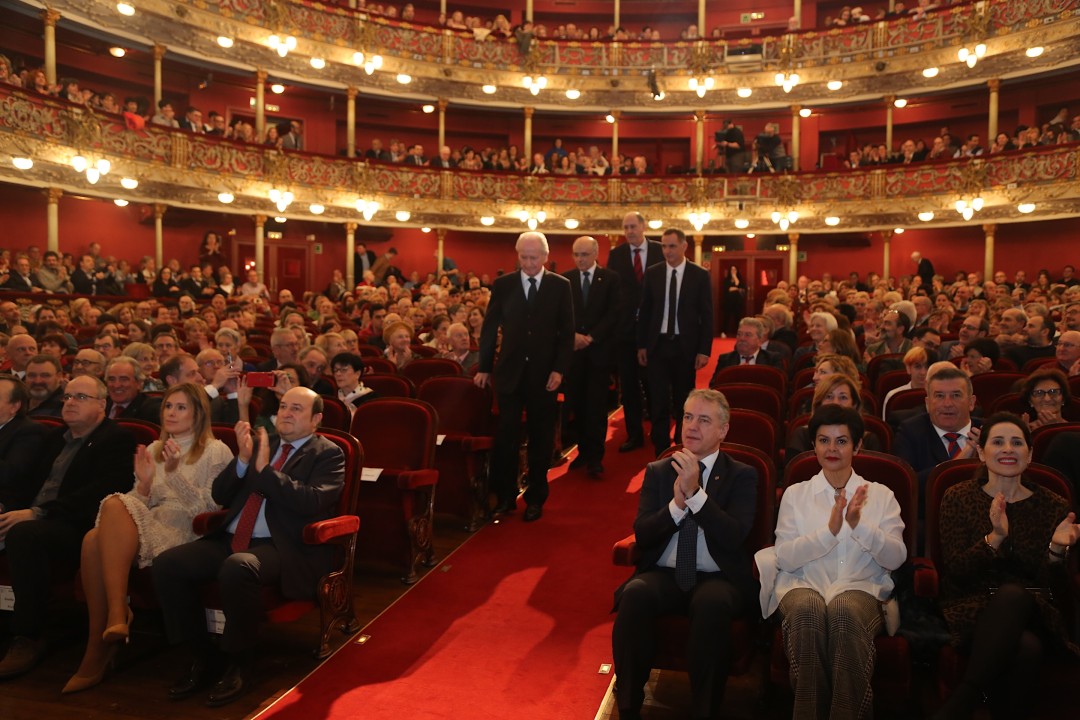 Acompañado de la directora de la Fundación, Irune Zuluaga, Atutxa ha ido recibiendo a los premiados y premiados.