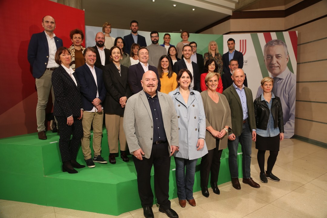 EAJ-PNV ha presentado en la mañana de hoy en Sabin Etxea (Bilbao) la candidatura de Bizkaia para las elecciones al Parlamento Vasco del 5 de abril. En un acto en el que han participado Itxaso Atutxa, presidenta del Bizkai Buru Batzar, y Leixuri Arrizabalaga, cabeza de lista de EAJ-PNV por el territorio, ambas han coincidido en que las mujeres y hombres que componen la lista vizcaína encaran esta nueva etapa con el compromiso de trabajar “con rigor, solidaridad y en equipo” para hacer frente a los retos cruciales que Euskadi tendrá por delante los próximos años. En palabras de Arrizabalaga estos desafíos son la igualdad de oportunidades, el reto demográfico, el medio ambiente, la economía y el Autogobierno vasco.