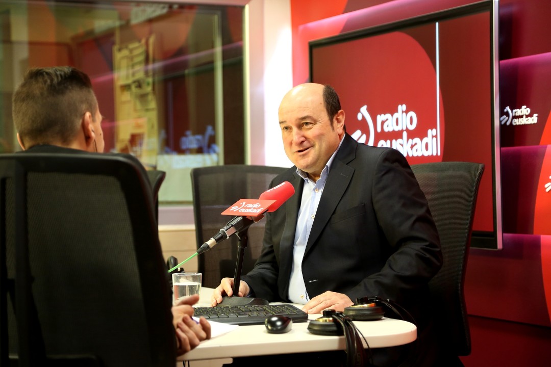 A Ortuzar le han preguntado si teme la “alianza de izquierdas” que con escaso éxito y no más entusiasmo vienen alimentando EH Bildu, hasta hace poco, y Elkarrekin Podemos, más recientemente. “El asunto es para qué quieren una coalición y qué coherencia tiene. Quien sacó la idea fue Arnaldo Otegi, pero se ha echado un poquito para atrás. Probablemente algún asesor electoral le habrá dicho que si siguen por ese camino lo que pueden hacer es apiñar todavía más voto en torno al PNV”, ha respondido. “¿Cuál iba a ser el programa en materia territorial de ese futuro gobierno de izquierdas en Euskadi? ¿Es que Bildu iba a renunciar al derecho a decidir, a las competencias plenas, a la soberanía y al régimen confederal? ¿Es que si están ellos en el Gobierno ya no hace falta nada de eso, ya se acabó la ideología nacionalista?”, le ha preguntado a la Izquierda Abertzale antes de replicar al partido que desde Madrid dirige Pablo Iglesias. “Parece que ahora a Podemos le repugna este PNV, aunque hace un mes acabamos de hacer un acuerdo con ellos. Le repugna la idea del PNV en el Gobierno Vasco, pero no le repugnan, para nada, los seis votos que han investido a Sánchez y que han hecho posible que Iglesias sea vicepresidente. Y tampoco parece que le van a repugnar cuando esos seis votos del PNV aprueben esos Presupuestos progresistas que, según ellos, van a cambiar el mundo. Pretender que en Euskadi no y en Madrid sí, pues no es justo. Si en Euskadi es no, en Madrid tampoco”, ha advertido. Ortuzar ha lamentado el hecho de que aún “nos falta saber para qué quieren ese gobierno, qué iban a hacer distinto. Lo único que les une es el deseo de quitar al PNV, sin reparar en las políticas que aquí se han hecho. Porque el PNV con quien ha pactado en los últimos tiempos es con la izquierda, aquí y en Madrid. Entonces, ¿qué pasa? ¿Que si pacta el PNV no hay política progresista? ¿No son progresistas las políticas que tenemos? ¿No tenemos una política progresista en la RGI en este país? Aquí hay gente que tiene la máquina de expender los carnés de progresista. El progresismo se defiende día a día, haciendo políticas. Y las políticas que se han hecho es Euskadi, no solo por el PNV pero sí impulsadas por el PNV o sostenidas por el PNV, son unas políticas progresistas”.