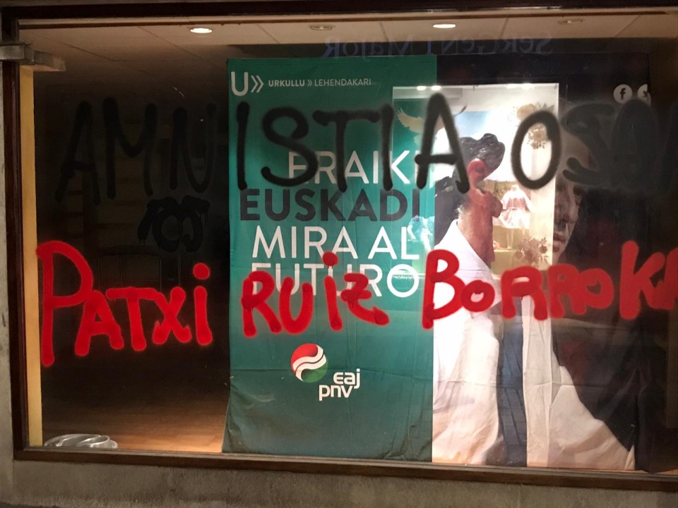 La ejecutiva de EAJ-PNV en Bizkaia también condena firmemente los similares ataques que han sufrido la sede de Podemos en Durango y la Herriko Taberna de la calle Ronda en las Siete Calles de Bilbao.