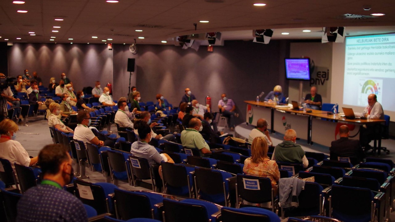 31AgostoLa Asamblea nacional de EAJ-PNV, reunida esta tarde en Sabin Etxea, ha aprobado por unanimidad el acuerdo que las comisiones negociadoras de EAJ-PNV y PSE-EE alcanzaron la pasada semana para la conformación de un Gobierno de coalición presidido por Iñigo Urkullu, conformado por consejeros y consejeras de ambas formaciones políticas y que tendrá fijados sus ejes prioritarios en la reactivación económica y en la generación de empleo desde la defensa de los servicios públicos y las políticas sociales, y sobre la base de más y mejor autogobierno. Este documento ya recibió el pasado jueves el visto bueno del Euzkadi Buru Batzar, y hoy ha recibido su refrendo oficial por parte de la Asamblea Nacional de EAJ-PNV, que es el órgano jeltzale al que compete la aprobación definitiva de los acuerdos de esta naturaleza. EAJ-PNV informará en breve de los detalles de la firma del acuerdo, siempre y cuando las bases del PSE-EE también lo validen en la tarde de hoy.