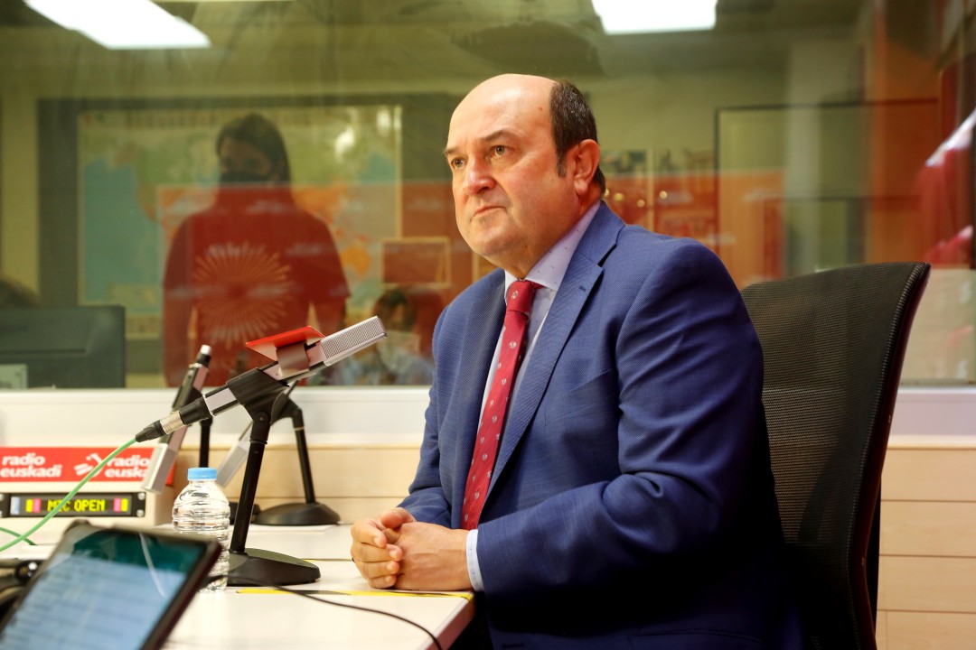 Preguntado por el distinto discurso que respecto a EAJ-PNV emplea Podemos en Vitoria-Gasteiz y en Madrid, el líder jeltzale ha sido claro. “Podemos, especialmente Podemos Euskadi, tiene una gran empanada mental político. No puede ser que el PNV se convierta en un querubín dialogante cuando pasa de Miranda hacia Madrid y aquí seamos unos ogros. Pues no: somos los mismos haciendo la misma política. Miren Gorrotxategi dice que no pueden sentarse a negociar un presupuesto neoliberal. ¿Cómo entendería Pablo Iglesias o Pedro Sánchez que yo dijera hoy en estos micrófonos que no me voy a sentar a negociar un presupuesto neocomunista? Ninguno de los dos conocemos los números de los presupuestos respectivos. No es razonable”, ha lamentado. “Gorrotxategi nos pide una reforma fiscal a la que el Gobierno de Madrid ha renunciado, cuando nosotros ya tenemos una fiscalidad más progresiva en Euskadi. Lo que hay que hacer aquí sí o sí, ¿en Madrid no? Podría traer casos, lo que pasó con La naval. ¿Nos acordamos de qué cosas dijeron de La Naval y de lo que teníamos que hacer? O ahora el caso de Iglesias. ¿Tiene que dimitir? Él dice que no. Si hiciéramos caso a la teoría de Podemos aquí, sí, porque cuando hay aquí un caso de estos lo primero que nos plantean es la dimisión. No quiero ser más duro ni más incisivo porque creo en el diálogo y espero que sepamos reconducir esto y sea una resaca final de la lucha electoral, y que con el 2021 llegue un nuevo talante para todos”.