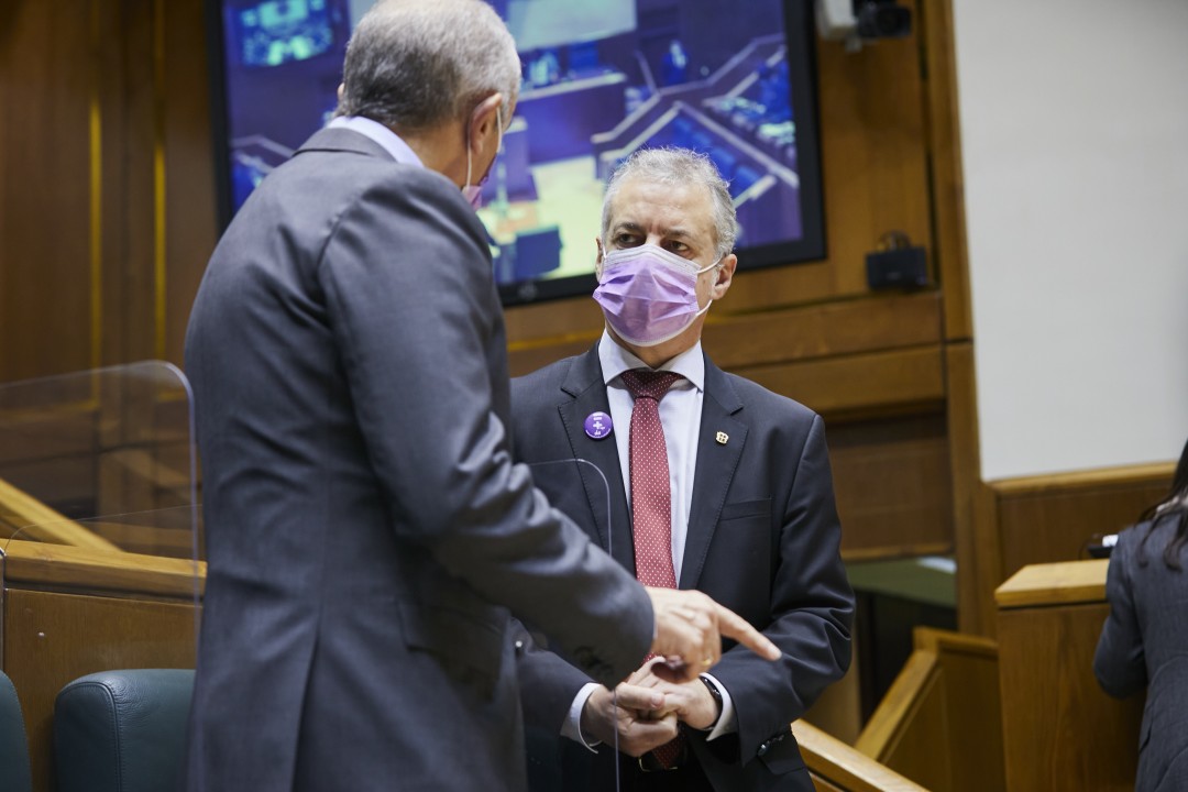 Las y los parlamentarios de EAJ-PNV asisten a la sesión plenaria con mascarillas moradas como símbolo del compromiso, la lucha y el apoyo a todas las mujeres víctimas de la violencia. “Nuestra vacuna será lograr que toda la sociedad asuma que mujeres y hombres somos iguales. Seguiremos trabajando por ello”