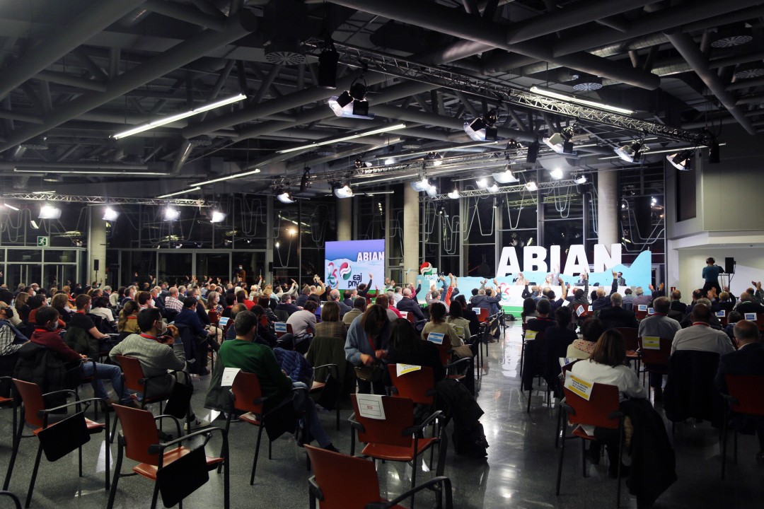 10DiciembrePor decisión unánime de los cien miembros que integran la Asamblea Nacional de EAJ-PNV, Andoni Ortuzar Arruabarrena seguirá siendo los próximos cuatro años presidente del Euzkadi Buru Batzar. Así lo ha decidido el máximo órgano jeltzale en la reunión que ha celebrado esta tarde en Euskalduna Jauregia. Un encuentro que, debido a las restricciones vigentes por culpa de la pandemia, no ha podido celebrarse en el marco de la Asamblea General, cita cuatrienal que EAJ-PNV prevé celebrar cuando las circunstancias sanitarias hagan posible reunir a las más de 600 personas que la integran. Ortuzar afronta desde hoy su tercer mandato al frente del Euzkadi Buru Batzar, a cuya presidencia accedió el 12 de enero de 2013, también en el Palacio de Congresos de Bilbao.