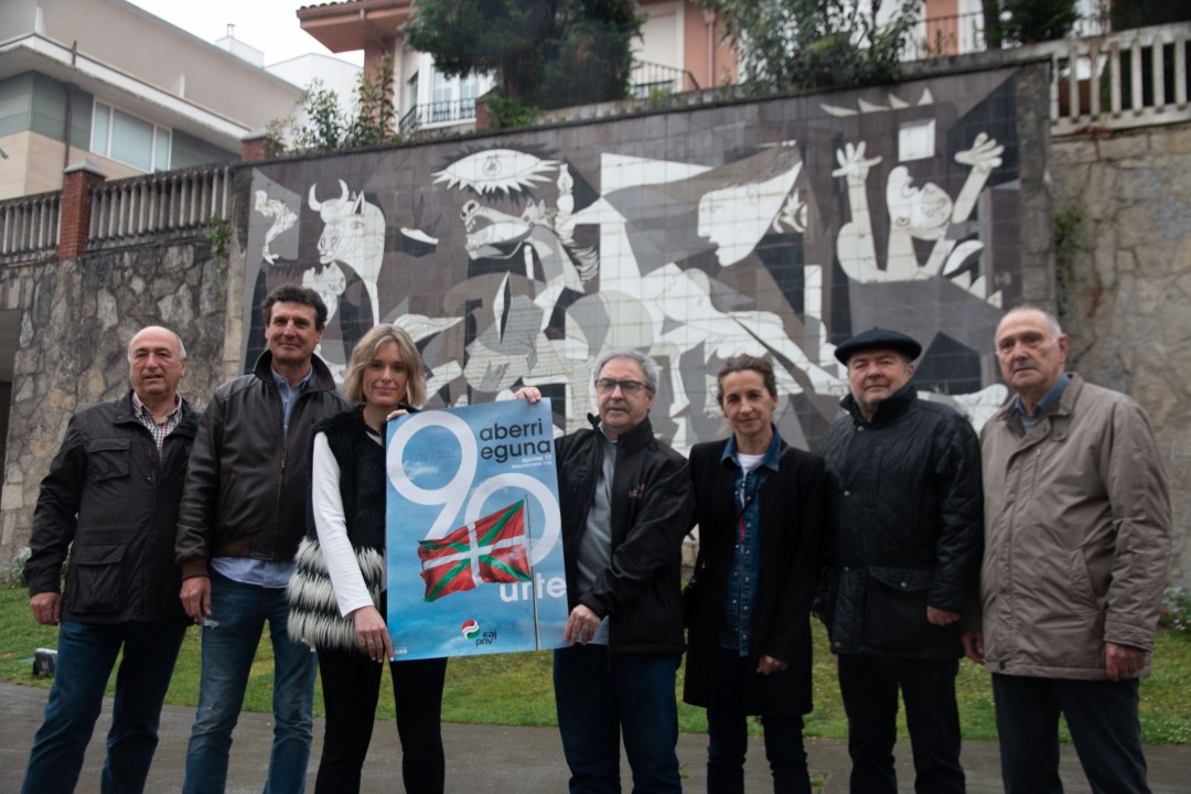 Mireia Zarate, secretaria del Euzkadi Buru Batzar, y Joseba Aurrekoetxea, burukide responsable del Área de Organización del EBB, han presentado esta mañana en Gernika-Lumo, junto al mural del ‘Guernica’ de Picasso, el acto con que EAJ-PNV celebrará este próximo domingo, en la Plaza Nueva de Bilbao, el Aberri Eguna de 2022. En el cartel anunciador, EAJ-PNV, más que un lema particular, ha querido resaltar el hecho de que el Aberri Eguna cumple este año su 90ª edición, toda vez que el primer Día de la Patria vasca se celebró en 1932. Asimismo, la elección de Gernika-Lumo para la presentación de hoy conecta con dos de los principales mensajes que la formación jeltzale lanzará en este Aberri Eguna: por un lado, expresar la más firme condena de la invasión de Ucrania y de los actos de lesa humanidad que Rusia viene cometiendo contra la población civil ucraniana; y, por el otro, remarcar el profundo e incuestionable carácter pacifista, demócrata y humanista de la reivindicación de libertad que EAJ-PNV lleva reclamando para Euskadi desde su constitución, en 1895. Ningún lugar mejor que Gernika, símbolo mundial de la paz y de las libertades del Pueblo Vasco, para trasladar este mensaje de solidaridad, cercanía y apoyo a un pueblo, el ucraniano, que lucha legítima y heroicamente por su libertad.