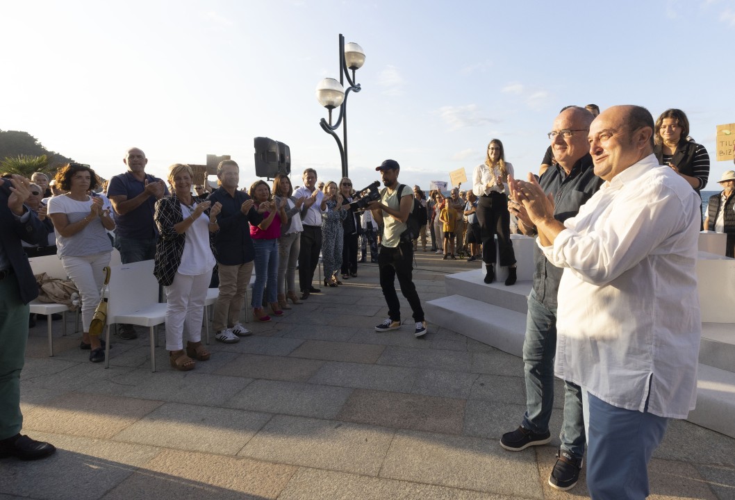 “Analistas y gobiernos nos están alertando de que vienen tiempos difíciles, un otoño y un invierno difíciles por la escasez y el precio de la energía y por el alza de la inflación y de la cesta de la compra. El martes, el Lehendakari lo comparaba con una tormenta que vamos a tener que capear cada una de nosotras y nosotros, y también como País. Toca hacer acuerdos entre gobiernos y entre partidos, desde el ámbito vasco al europeo pasando por el estatal, para adecuarnos a esta compleja realidad y, sobre todo, para dar respuestas acertadas a la ciudadanía”. Este ha sido el principal mensaje que Andoni Ortuzar, presidente del Euzkadi Buru Batzar, ha trasladado hoy a las cerca de 500 personas que han asistido en el Malecón de Zarautz al tradicional acto político con el que EAJ-PNV da inicio al curso poltico. En el mitin también han intervenido Joseba Egibar, presidente del Gipuzko Buru Batzar, y Jokin Landa, presidente de la Junta Municipal de Zarautz. Entre las y los asistentes se encontraban la presidenta del Parlamento Vasco, Bakartxo Tejeria; el diputado general de Gipuzkoa, Markel Olano; el diputado general de Bizkaia, Unai Rementeria; el presidente de las Juntas Genales de Gipuzkoa, Xabier Ezeizabarrena; el portavoz del Gobierno Vasco, Bingen Zupiria, y los consejeros Josu Erkoreka, Arantxa Tapia, Jokin Bildarratz, Beatriz Artolazabal, Gotzone Sagardui y Mikel Irujo, así como numerosos cargos públicos e internos de EAJ-PNV, incluida la presidenta del Bizkai Buru Batzar, Itxaso Atutxa, y los presidentes del Araba Buru Batzar, José Antonio Suso; del Napar Buru Batzar, Unai Hualde; y del Ipar Buru Batzar, Peio Etxeleku..