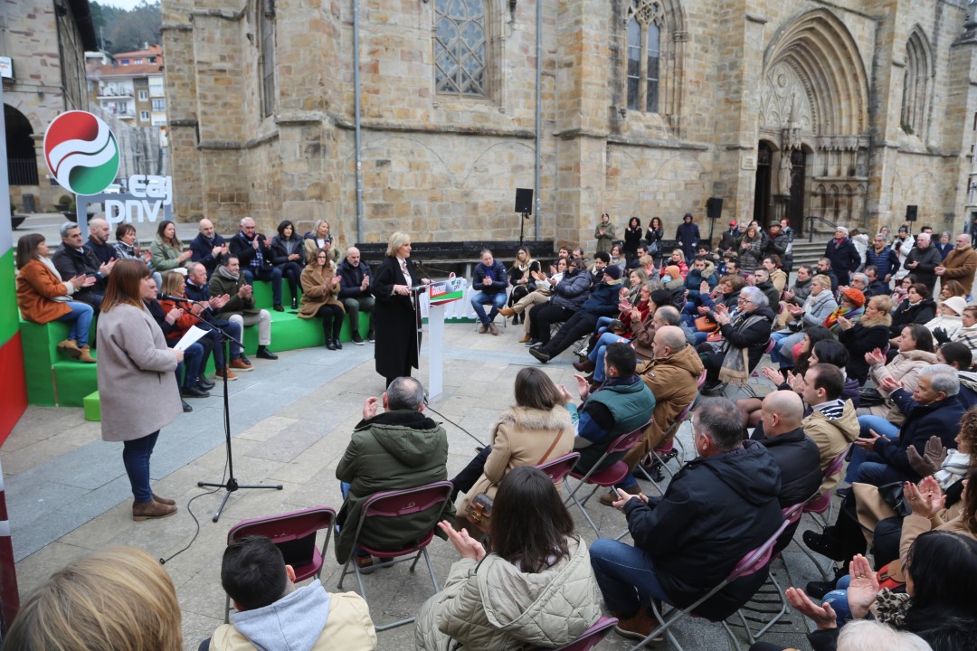 “Somos un equipo; un equipo fuerte, unido y centrado que tiene un proyecto de futuro para Enkarterri, Bizkaia y Euskadi”. Así de sincera se ha mostrado Itxaso Atutxa, presidenta del Bizkai Buru Batzar, durante el acto de presentación de las candidaturas que EAJ-PNV presentará en esta comarca en las elecciones municipales y forales del próximo mes de mayo. “11 mujeres y hombres que ya están inmersos en la elaboración de unos programas electorales que ofrezcan a la ciudadanía proyectos de futuro ilusionantes, que garanticen unos servicios públicos de calidad y que impulsen la actividad económica como principal motor para la creación de puestos de trabajo”, ha avanzado. En este sentido, Atutxa ha recordado que la herramienta más eficaz para ello es “una política fiscal justa, progresiva y atractiva”.