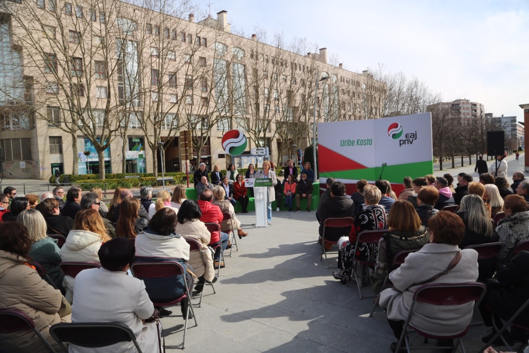 La candidata a diputada general de Bizkaia por EAJ-PNV, ha estado acompañada por Itxaso Atutxa, presidenta del Bizkai Buru Batzar, y las mujeres y hombres que liderarán las listas jeltzales a las 9 alcaldías de Uribe Kosta, así como las candidatas y candidatos de la circunscripción correspondiente a Juntas Generales y más de un centenar de alderdikides y simpatizantes.