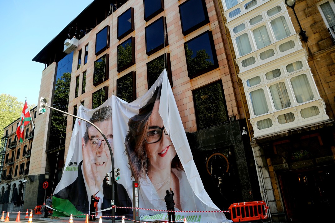 “Aurrera, batera! Euskadi mira al futuro”. Este es el lema con el que EAJ-PNV se presentará ante la ciudadanía vasca en las elecciones municipales y forales del próximo 28 de mayo, un ‘claim’ que será declinado para cada Territorio Histórico y para municipio. El presidente del Euzkadi Buru Batzar, Andoni Ortuzar, ha sido el encargado esta mañana de dar a conocer este lema. Lo ha hecho en el transcurso del acto en el que la formación jeltzale también ha dado a conocer la lona que tradicionalmente ocupa la fachada de Sabin Etxea en periodo electoral. En esta ocasión, en la fotografía elegida aparecen el alcalde de Bilbao y candidato a la reelección, Juan Mari Aburto, y la diputada foral de Administración Pública y Relaciones Institucionales y candidata a diputada general de Bizkaia, Elixabete Etxanobe. Ambos han estado esta mañana acompañando a Ortuzar, junto a representantes de Euzko Gaztedi-EGI.