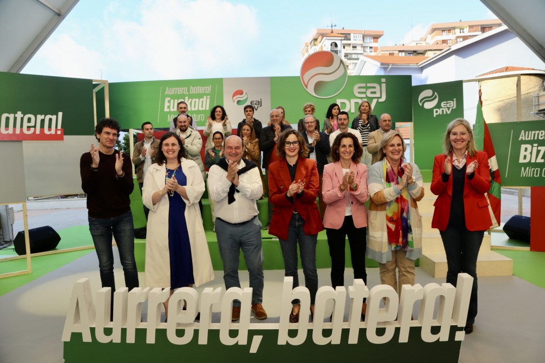 El presidente del EBB ha reivindicado el buen funcionamiento de los servicios públicos en Euskadi en un acto político en el que ha participado junto a la alcaldesa y aspirante a la reelección, Aitziber Oliban, y la candidata jeltzale a diputada general de Bizkaia, Elixabete Etxanobe