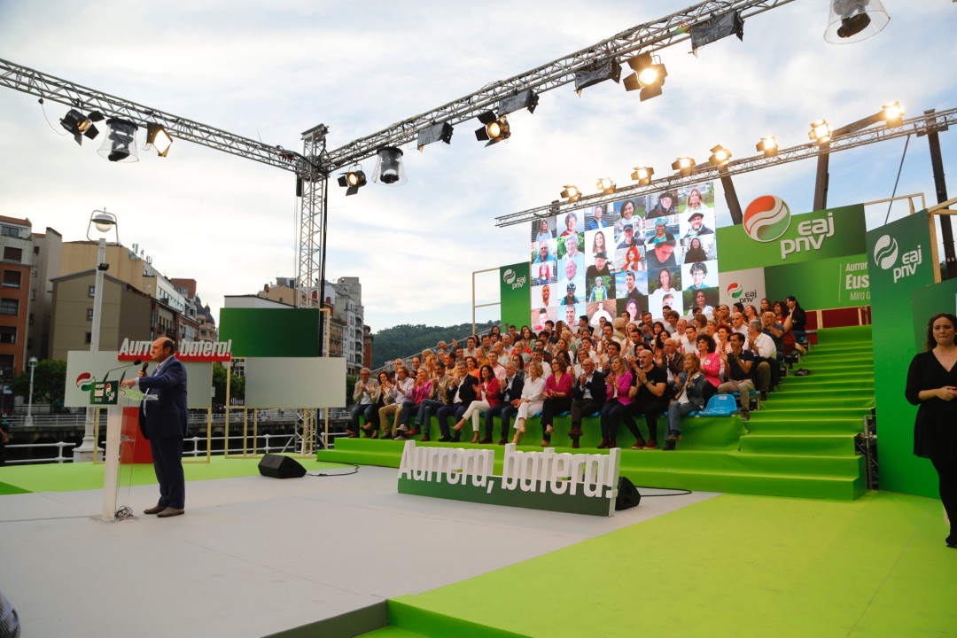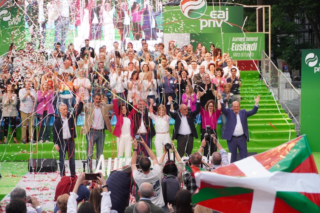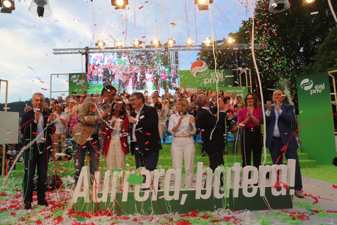 En el tradicional cierre de campaña de El Arenal, el presidente del EBB, Andoni Ortuzar, reivindica a EAJ-PNV como “el partido de la gente” y lanza un llamamiento especial a las mujeres: “Vosotras podéis decidir que por primera vez en la historia haya diputada general en Bizkaia y en Gipuzkoa, y alcaldesa en Vitoria-Gasteiz”