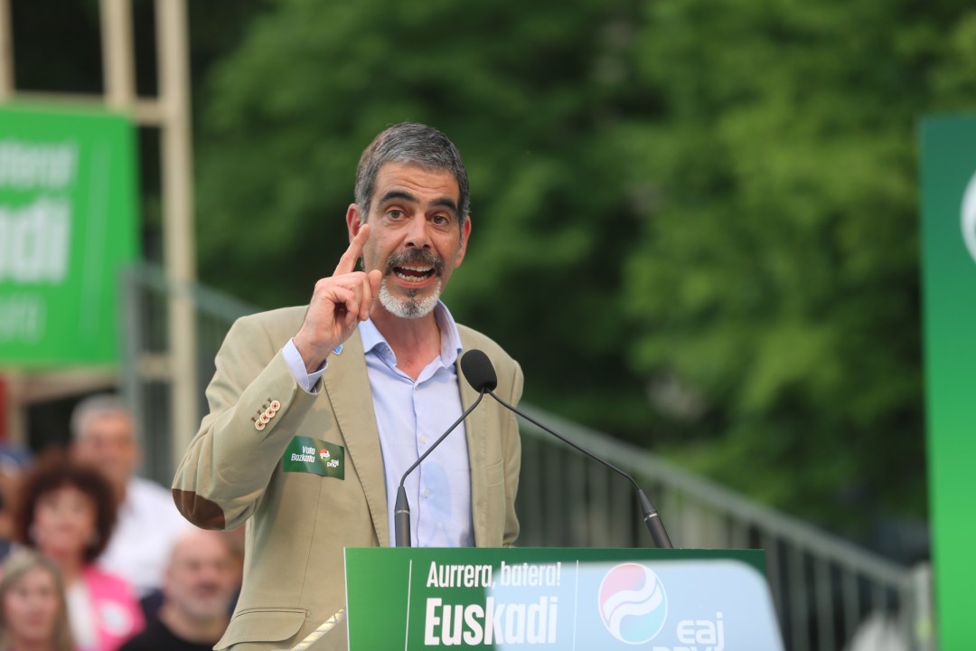 Ortuzar ha señalado que a EAJ-PNV la campaña “se nos ha hecho corta porque para algunos “ha sido cualquier cosa menos una campaña de elecciones municipales y forales. Foral y municipal, salvo el PNV, nadie. Los de Madrid, a lo suyo: a la Moncloa y a su jueguito de Monopoly. ‘Yo me quedo a Moncloa y Valencia. Yo te quito La Rioja y Baleares. Y, como te descuides, te compro a medias con Vox Valencia y te quedas sin nada’. Y le han hecho la campaña a Bildu, y Bildu encantado: que hablen de uno, aunque sea mal. Yo veía a Eneko, a Bea o a Juan Mari, también a Ramiro, a Eider o a Elixabete, desgañitándose por explicar su programa, sus ideas y propuestas, mientras el resto o se ponía al cobijo del ruido de Madrid o se vestía de Armani para salir en las fotos”, ha explicado el dirigente abertzale. Ortuzar ha pedido, eso sí, un último esfuerzo a las bases de EAJ-PNV. “Hay aún hay mucha gente indecisa. Gente que la podemos tener cerca, en la misma escalera, en la cuadrilla, en el trabajo, incluso en la familia. Hay que convencerles para que vayan a votar, y voten PNV. Hay que ayudarles a reflexionar. Hay que hacer llegar a nuestro entorno lo importante que es votar”, ha arengado.