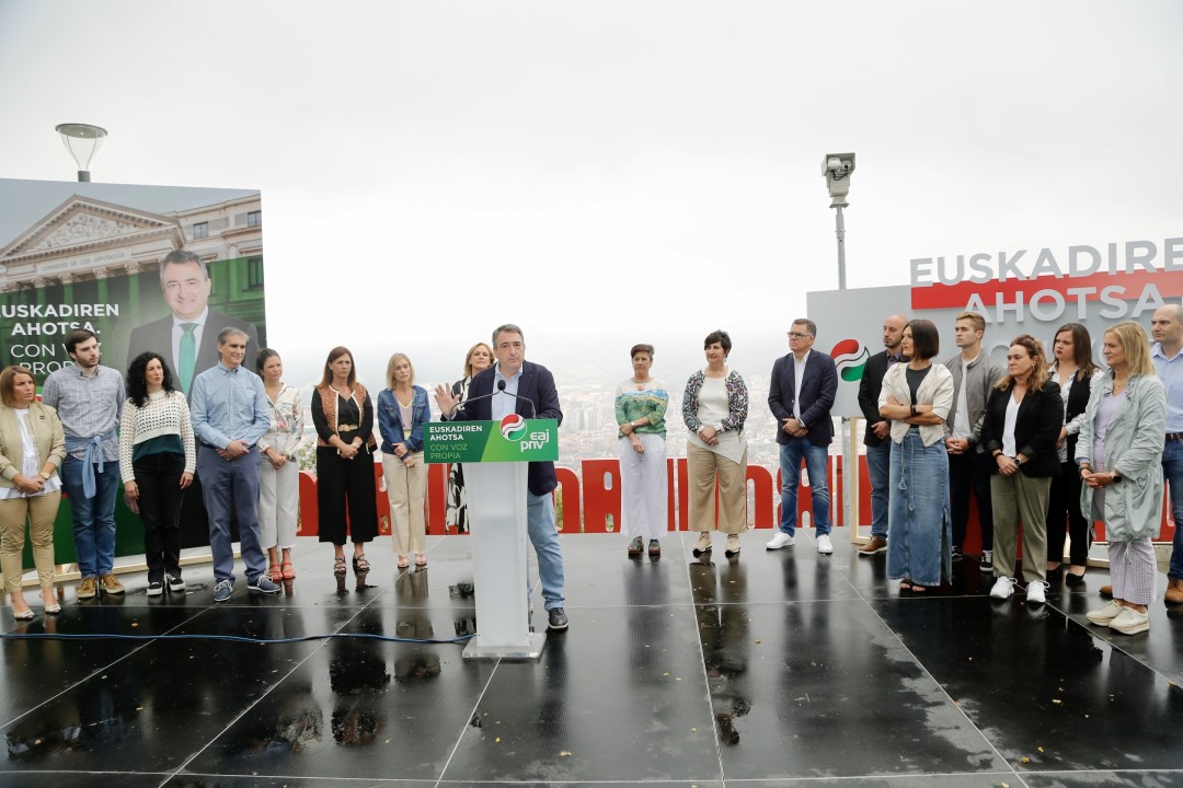 Las referencias ciclistas han marcado la intervención de Esteban en clara alusión al paso del Tour por tierras vascas. “El maillot del equipo PNV es el verde de Euskadi, y esa es nuestra única referencia. No estamos aquí para hacer de muleta de otros equipos y sus programas. Nosotros tenemos nuestro propio programa y nuestras prioridades que son la mejora de la vida de la ciudadanía vasca y dar a la nación vasca la presencia que se merece, una voz propia. Nuestra única lealtad es con la democracia, los derechos humanos y el pueblo vasco”, ha recalcado.