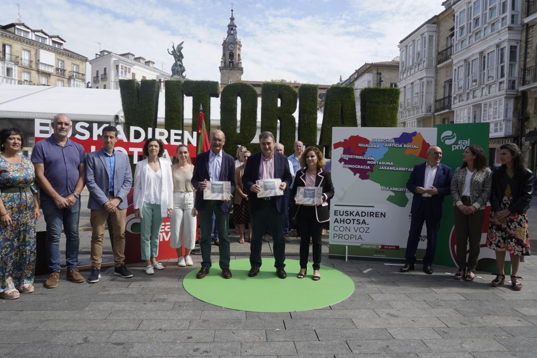 “Un programa desde Euskadi y para Euskadi”, como ha asegurado Esteban, quien se ha comprometido, junto a los hombres y mujeres que encabezan las candidaturas jeltzales al Congreso y al Senado, a “trabajar como nadie para seguir siendo la voz de Euskadi en Madrid, sin dependencias y sin ser muleta de nadie”.