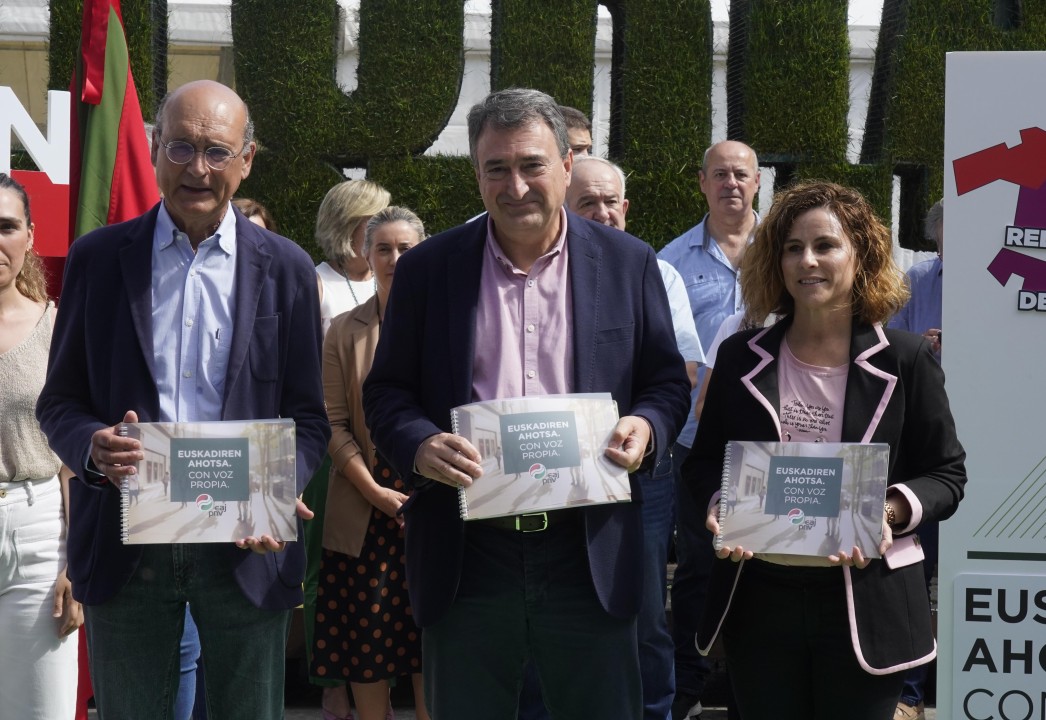 La defensa del autogobierno, de la identidad nacional, de Euskadi y sus instituciones es un “elemento nuclear” del programa que ha presentado hoy EAJ-PNV, que cuenta con propuestas para el bienestar de los y las vascas, que abarcan desde el ámbito económico y fiscal a la defensa de los derechos y libertades, pasando por el desarrollo sostenible, el empleo y las pensiones, las políticas sociales y las infraestructuras. “Es un programa muy completo, propio, equilibrado e independiente”, ha dicho Esteban.