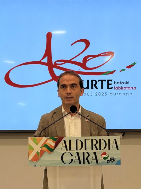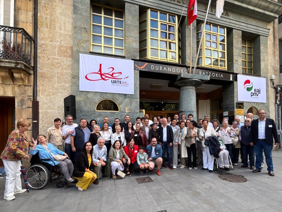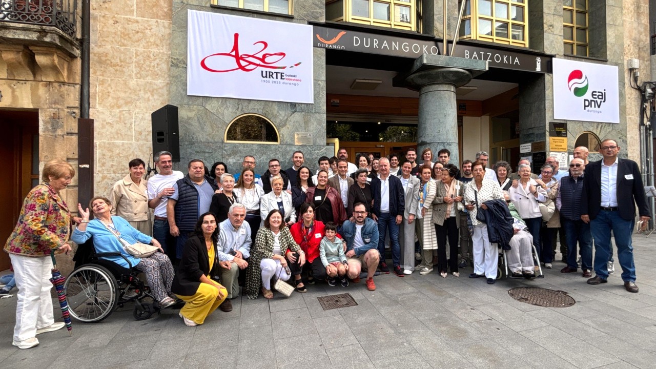 21SeptiembreLa Organización Municipal de Durango ha conmemorado hoy el 120 aniversario de su batzoki en un acto que ha reunido a más de un centenar de alderdikides y alderdizales durangarras y de la la comarca. El encuentro ha estado presidido por Iñigo Ansola, presidente del Bizkai Buru Batzar, quien ha recordado la trayectoria histórica de EAJ-PNV en la localidad y ha subrayado que “el batzoki ha sido, es y seguirá siendo un faro que ilumina el camino de Euskadi”. Ansola ha comenzado con una condena explícita a las matanzas que se están produciendo en Gaza y en Ucrania, coincidiendo con la conmemoración del Día Internacional de la Paz. “Nuestra solidaridad está con todas las personas que sufren violencia y destrucción; hoy, más que nunca, reafirmamos el compromiso vasco con la paz justa en el mundo”, ha afirmado. El presidente del BBB ha recordado que aquel batzoki inaugurado hace ya 120 años fue un símbolo de resistencia, compromiso y esperanza en momentos difíciles: desde la represión de la dictadura hasta la transición democrática. “Gracias a quienes, a pesar de los obstáculos, mantuvieron viva la llama de este faro. Izan zirelako gara, y garelako izango dira”, ha expresado.