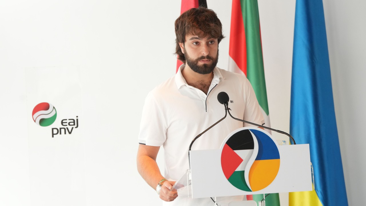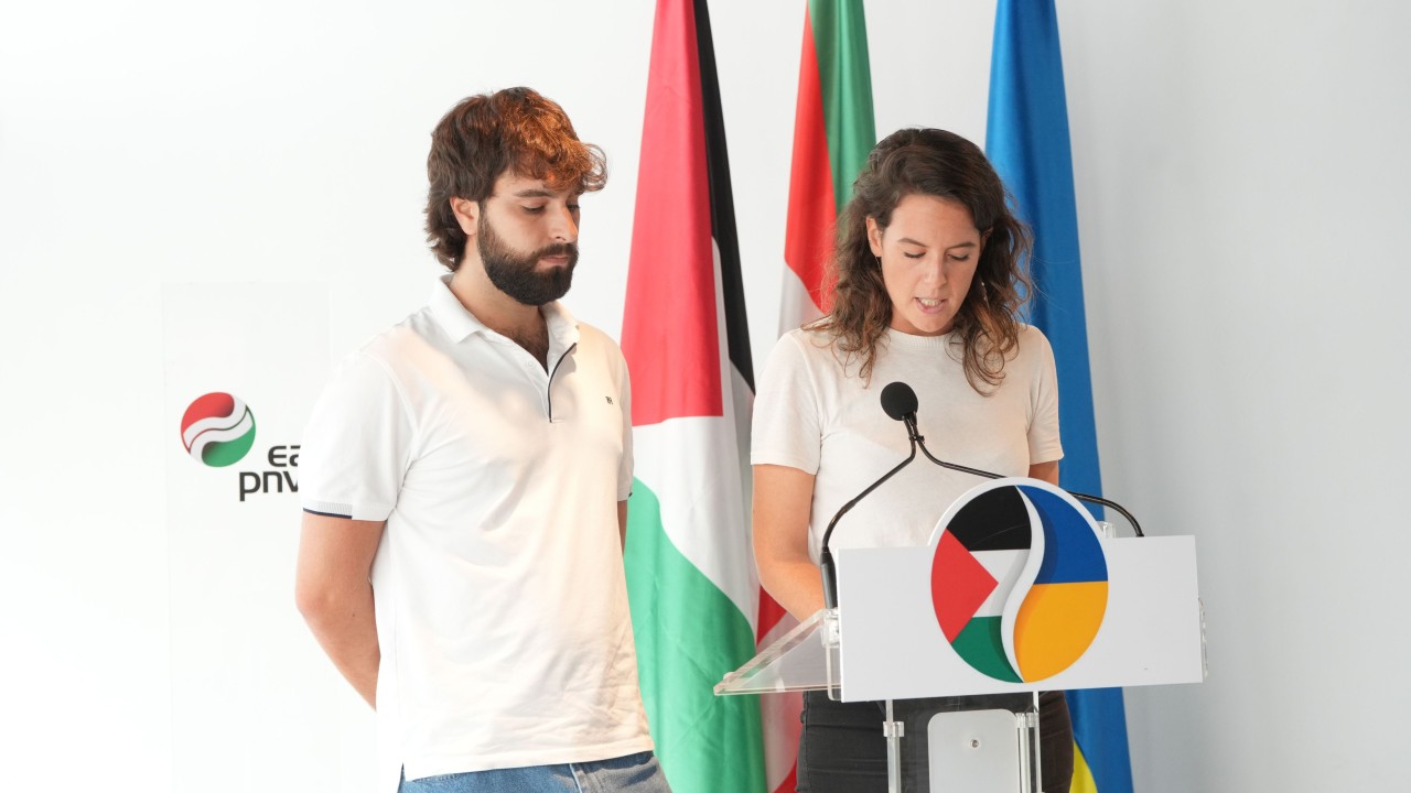 El PNV ha presentado el Manifiesto de Compromiso Vasco con una Paz Justa en el Mundo, en una concentración para exigir que terminen las masacres en Gaza y Ucrania