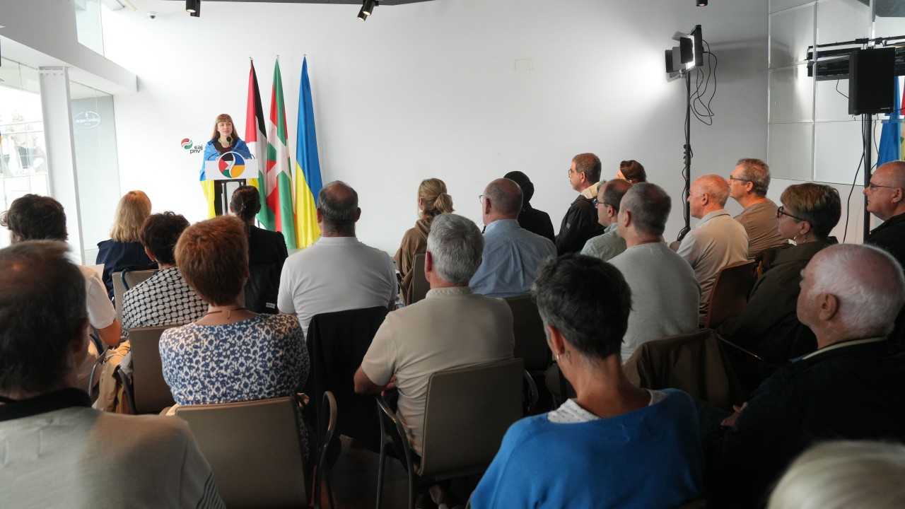 Valentyna Zaichenko, miembro de la asociación Ucrania-Euskadi, ha recordado que “la guerra prosigue en Ucrania de la manera más cruel e injusta. Es doloroso comprobar que, mientras surgen nuevas realidades en el mundo, Ucrania ha dejado de ser noticia, cuando en pleno siglo XXI siguen las muertes en Europa. Cada día, cientos de misiles y drones matan a personas sin ningún objetivo militar, más que infundir miedo. El mundo no puede seguir mirando a otro lado”.