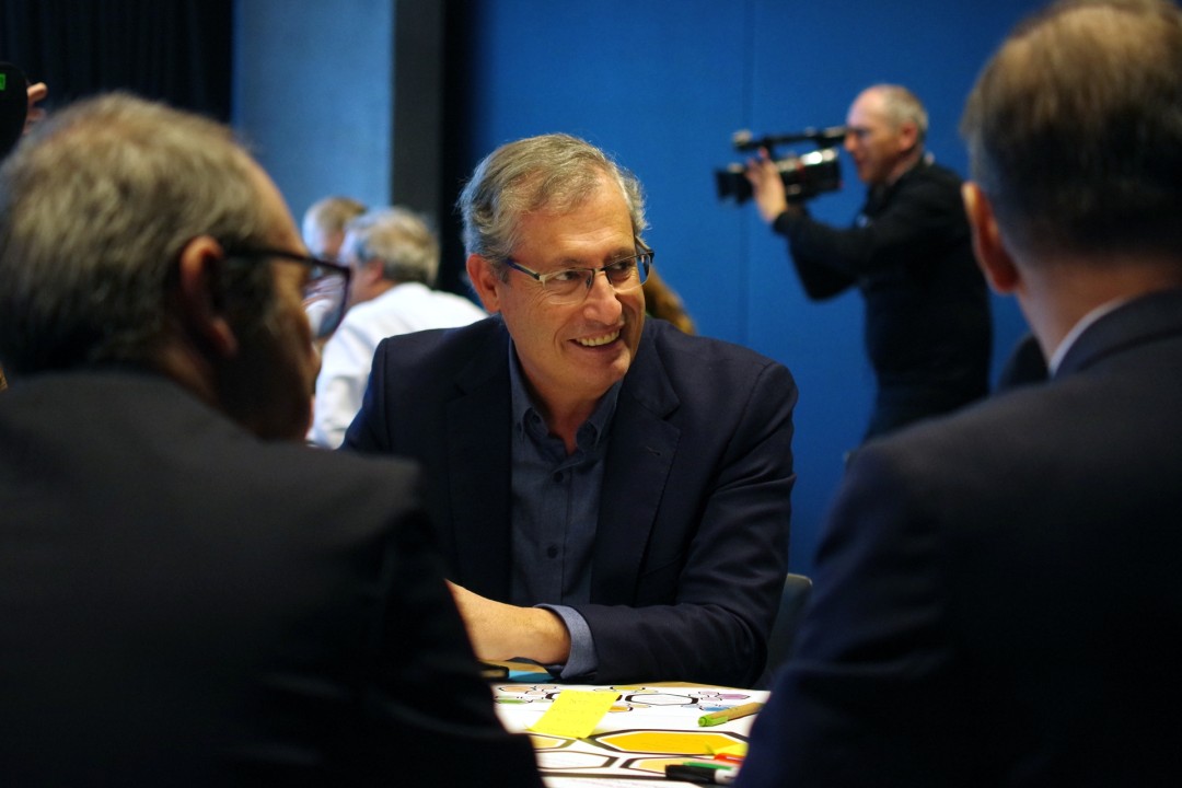 El presidente del EBB ha participado, junto a los burukides Miren Martiarena y Markel Olano y la eurodiputada jeltzale Oihane Agirregoitia, en una jornada de trabajo con clústeres vascos de 16 sectores industriales con el objetivo de conocer de primera mano sus prioridades de cara a la extensa agenda que Esteban tendrá en la capital europea