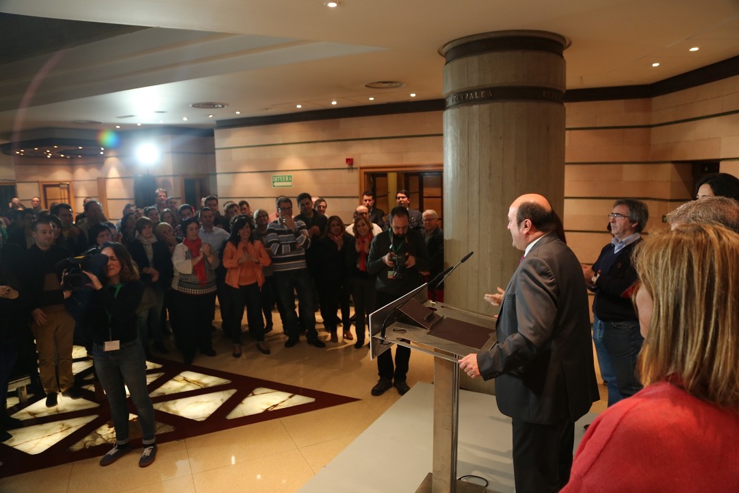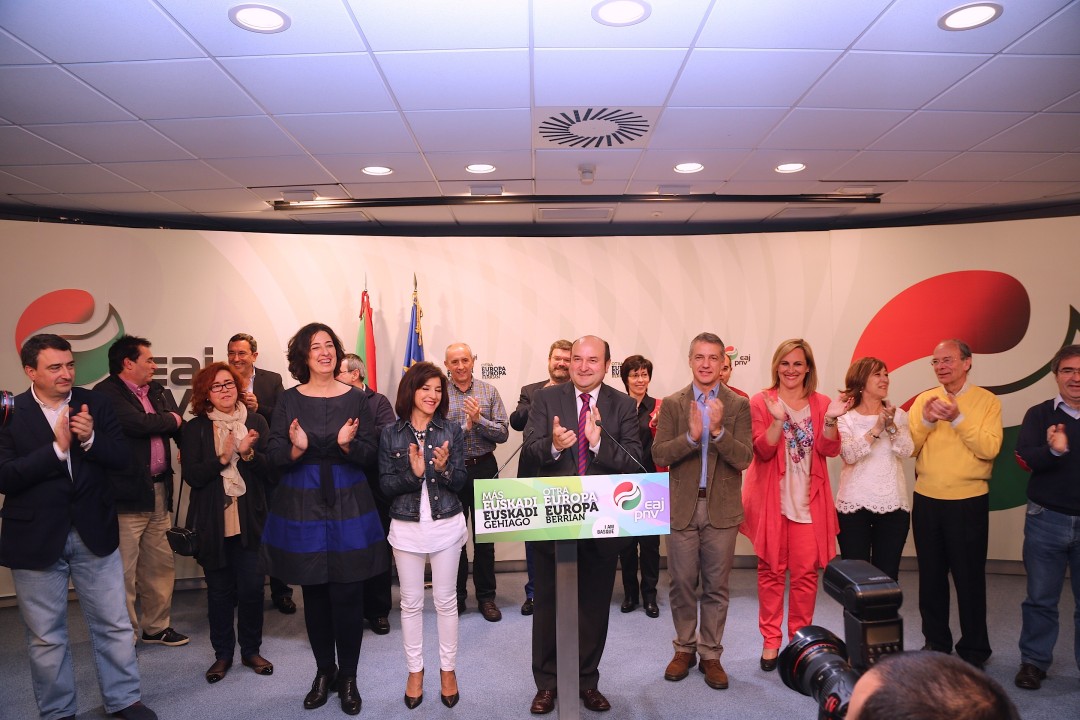 EBBren presidente den Andoni Ortuzarrek eta Izaskun Bilbaok prentsa aurrean agerraldia egin dute Euzkadi Buru Batzarraren kide gehienekin, Bizkai Buru Batzarrarekin, Iñigo Urkullu lehendakariarekin eta Eusko Jaurlaritzaren hainbat sailbururekin. Buruzagi abertzalea pozik eta eskerturik agertu da eta “Europan berezko ahotsa izaten jarraitzearen” garrantziaz mintzatu da.