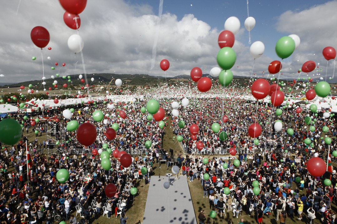 Forondako zelaiek EAJ-PNVren milaka alderdikide eta alderdizale hartu ditu 2015eko Alderdi Eguna ospatzeko. Berriz ere, Alderdi Eguna oso arrakastatsua izan da parte hartze eta antolaketa aldetik. Unerik gogoangarriena izan da eguerdiko 12:00ak aldera, Ortuzar eta Urkulluren diskurtsoak baino lehenago, bertan bildutakoek arabar zeruan 30.000 puxika gorri,zuri eta berde askatu dituztenean, EAJ-PNVren esentzia laburbiltzen duten sei hitzekin: ‘Euskadi’, ‘Euskara’, ‘Askatasuna’, ‘Elkartasuna’, ‘Burujabetza’ eta ‘I Am Basque’. “Euskal emakume eta gizonen gehiengoaren gurariak, gogoak eta borondateak ordezkatzen dituzten hitzak dira. EAJ-PNV azken 120 urteotan gidatu duten baloreak gorpuzten duten hitzak dira, eta geroan ere, Euskadirentzako etorkizunik onenerako bidean gidatuko gaituztenak”.